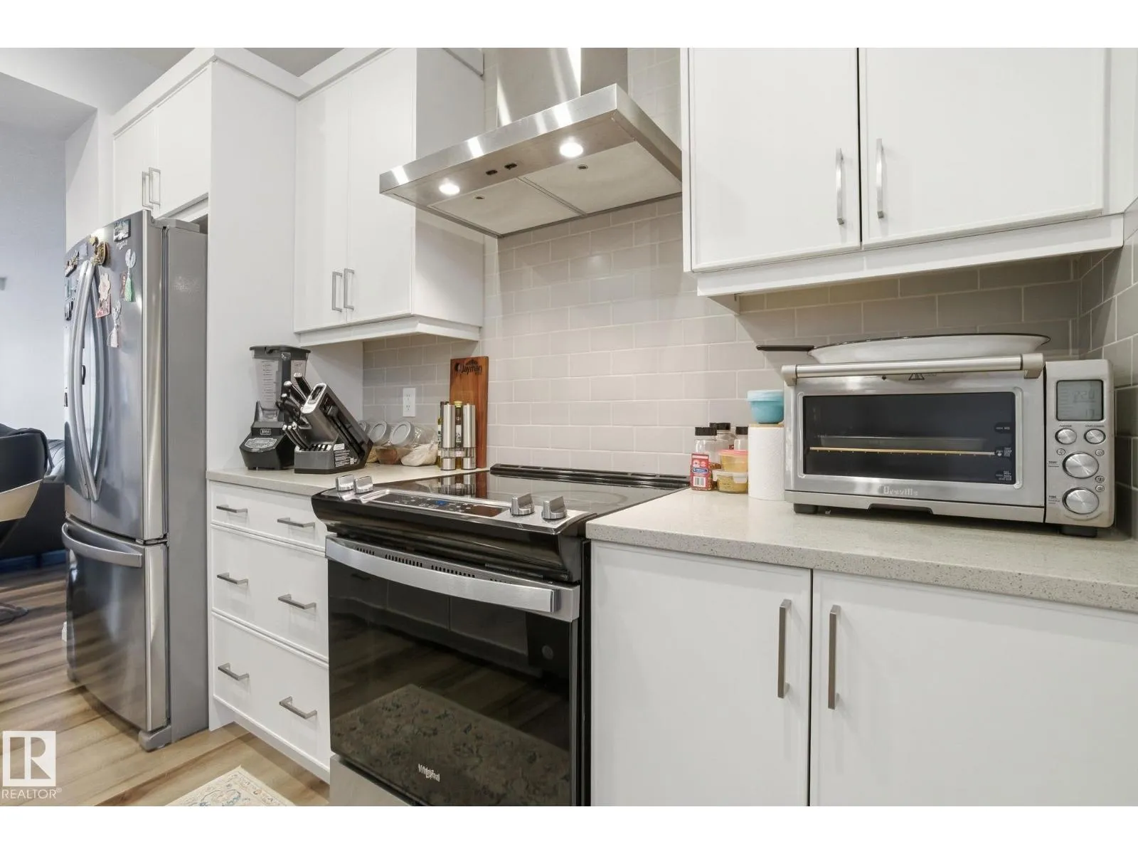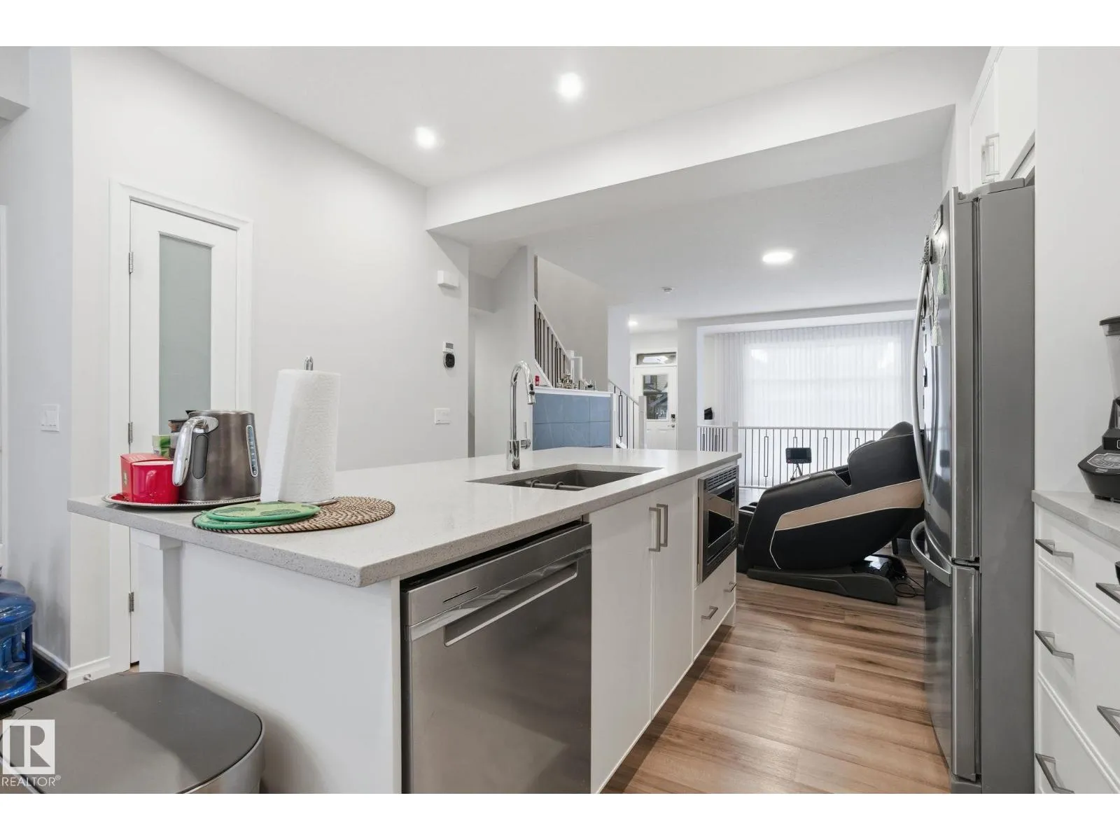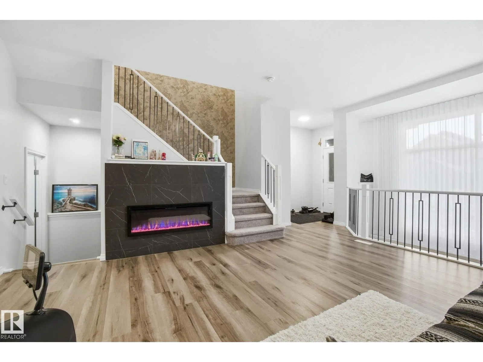 Step into this immaculately maintained Jayman Built Renew 20 model. Featuring a fully finished bsmt & an open-to-below layout, this home is flooded w/ natural light throughout. Nearly $20K in builder upgrades include enhanced kitchen finishes, a built-in fireplace w/ tile surround, quartz countertops throughout, iron spindle railings & more. The upgraded S/S appliance package, solar panels, & builder-enhanced