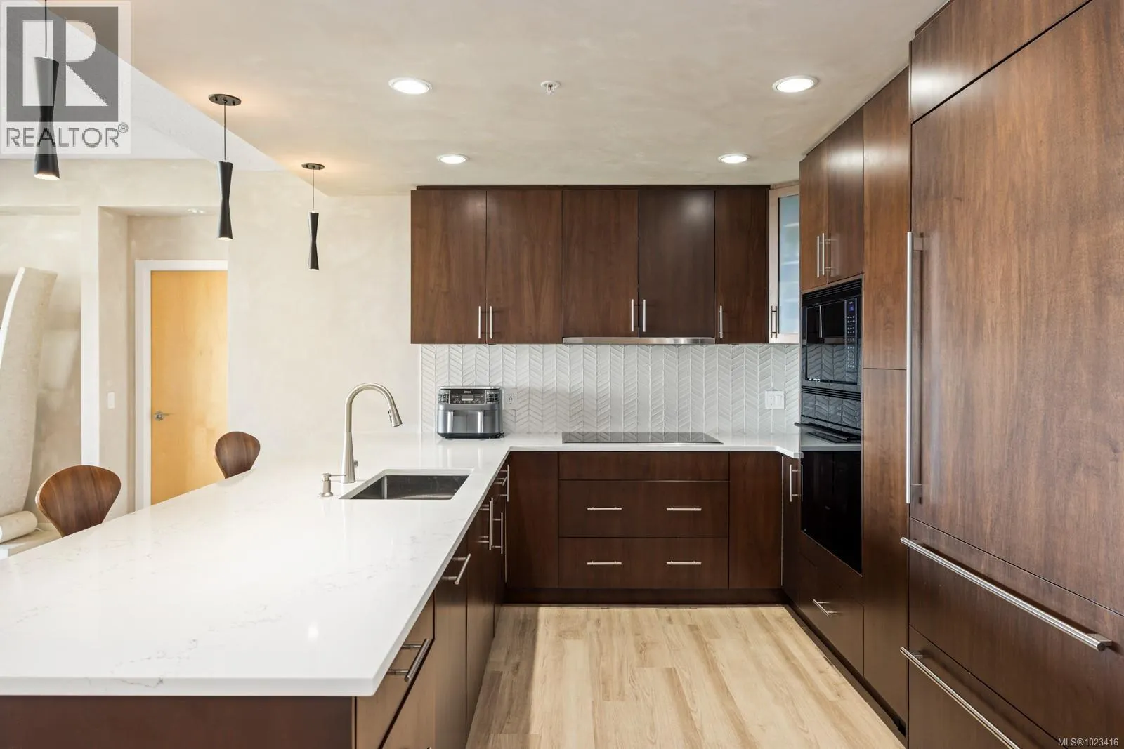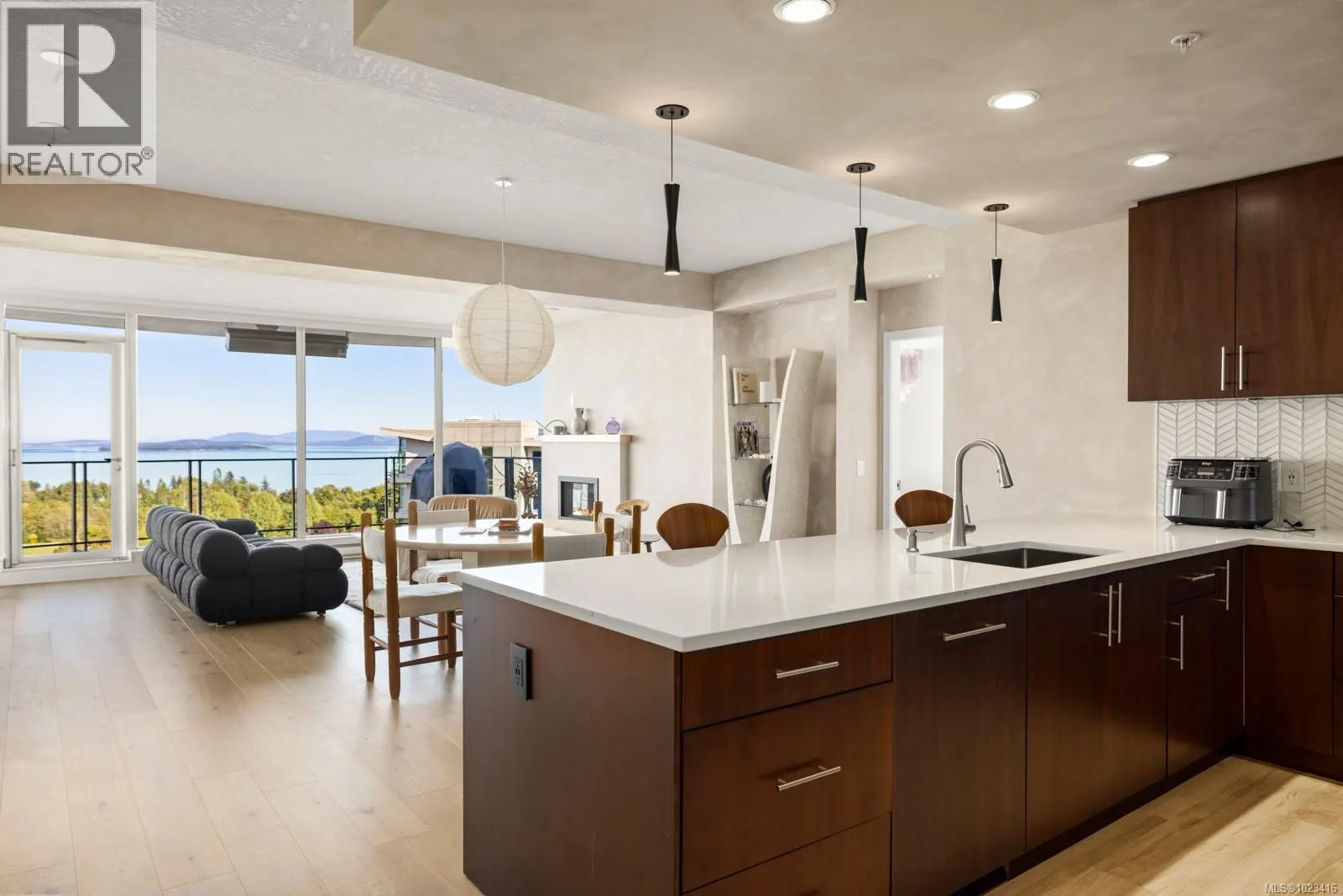 Welcome to ”Ridge View”, set against a backdrop of stunning natural beauty. Nestled in the prestigious seaside community of Cordova Bay, this 2-bedroom plus den residence, crafted by the esteemed Jawl Development, offers panoramic views of the Salish Sea, Gulf Islands, and distant mountains from every expansive window. A refined, timeless design features white oak flooring, a gourmet kitchen with