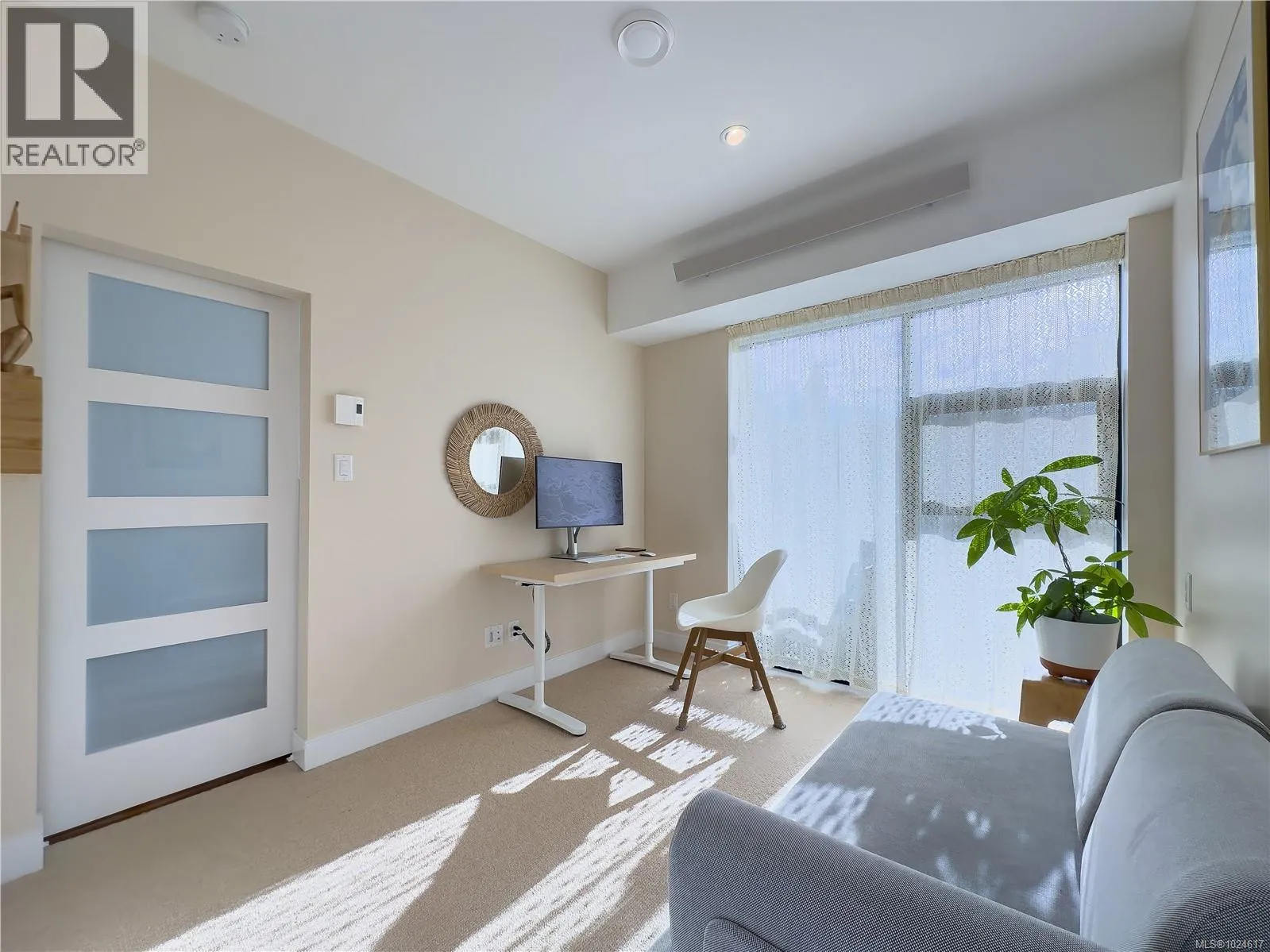 Quiet, light, and a SOUTH FACING layout that works. Welcome to The Wade on Fernwood’s downtown edge. A 2021 steel and concrete low rise with new home warranty coverage, built for calm downtown living. As one of the best situated units it faces landscaped gardens, so your backdrop is fruit trees and south light, not traffic. Floor to ceiling glass