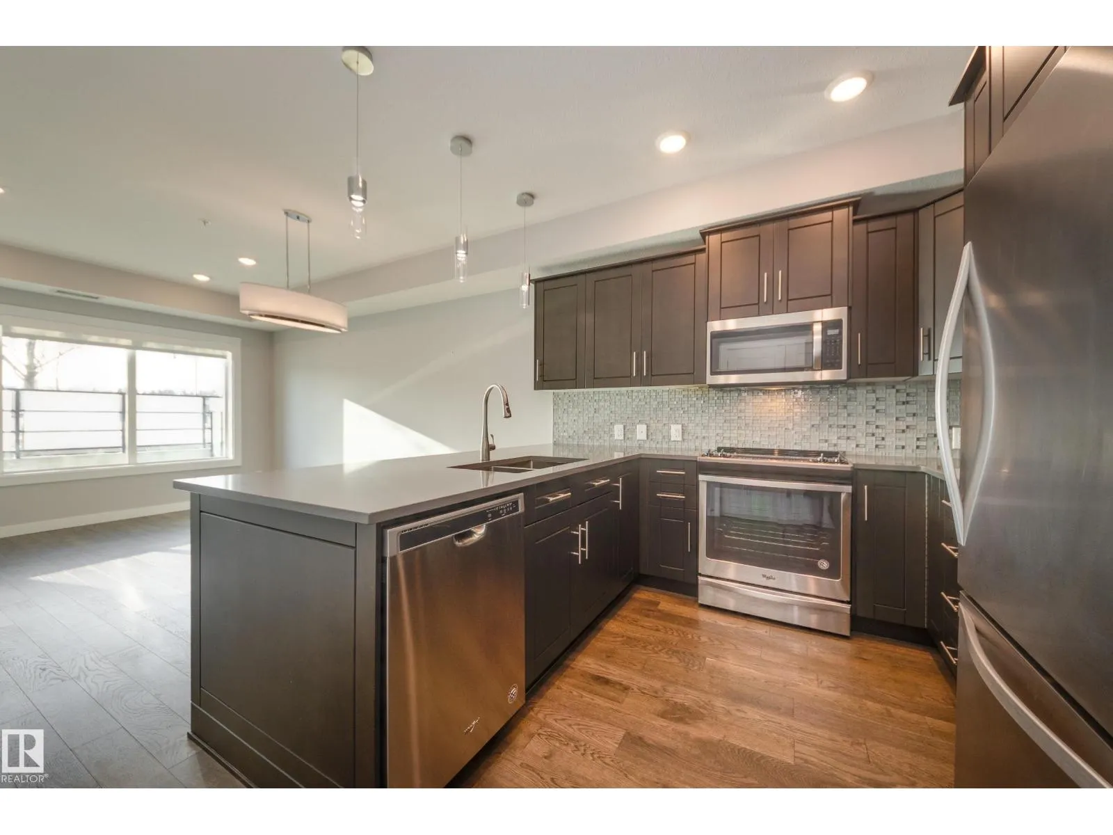 Savona sets a new standard for refined urban living in Sherwood Park. This 1 bed. + den, 1 bath. blends upscale finishes with thoughtful design, offering bright open concept living under soaring 9 ft ceilings and engineered hardwood. Expansive windows invite natural light throughout, while the gourmet kitchen showcases quartz surfaces, modern cabinetry, and premium stainless appliances. The spacious living