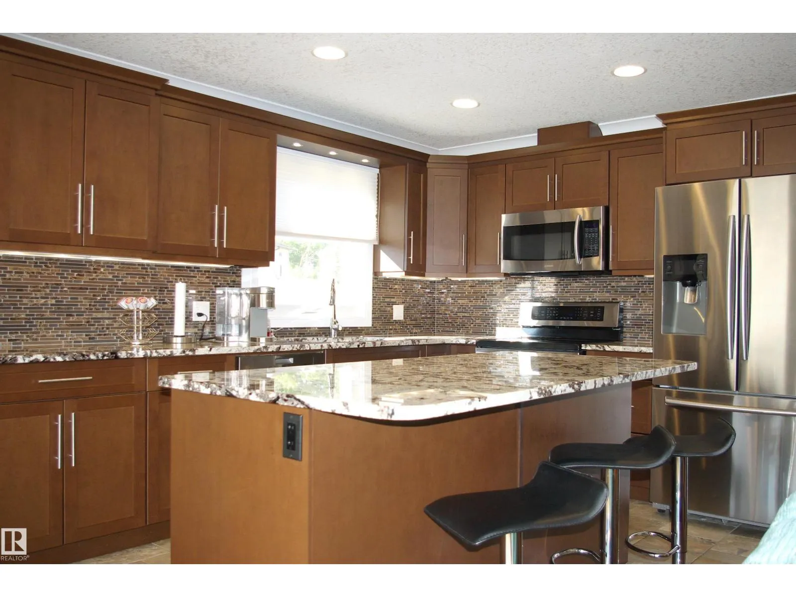 What a find! Tucked away in a cul-de-sac, just steps away from the park, this remodeled sleeper sits. Walk in to the inviting fower, and prepare to be impressed. The main floor is one giant room, with windows across the front. Living room features recessed lighting and built-in surround sound, endineered hardwood floors. The island kitchen