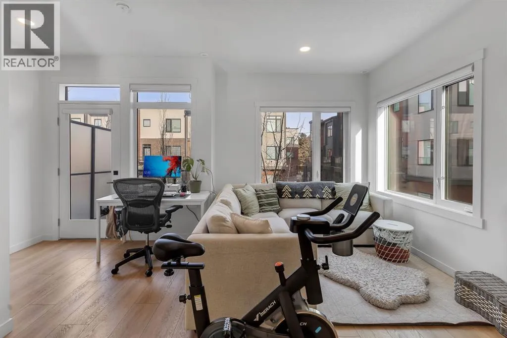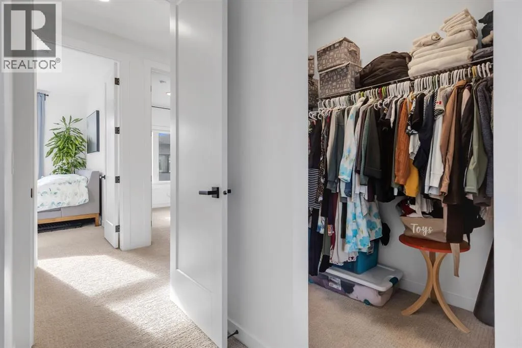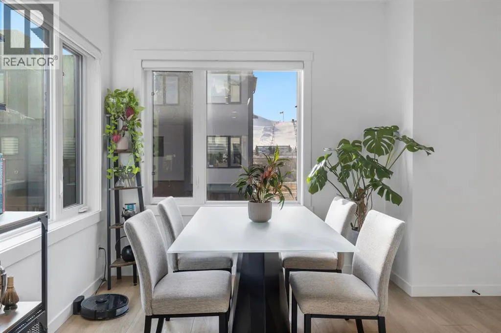 parking and storage. Professionally curated interior colour packages and an abundance of builder upgrades elevate the home throughout. Crafted with attention to detail, the residence showcases exceptional finishes paired with outstanding natural light. The north-facing frontage overlooks the community’s central courtyard and pathway system, while east-side and south-backing exposures flood the home with sunlight through expansive corner windows. Outdoor living is enhanced by a walkout exposed aggregate patio facing the courtyard and an elevated glass-panelled balcony, offering both privacy and scenic views. Inside, you’ll find luxury vinyl plank flooring on the main and lower levels, quartz countertops on all floors, 9-foot ceilings throughout, and stainless steel upgraded gourmet appliances, including a gas stove and chimney hood fan. High-efficiency features include triple-pane windows, a Navien on-demand tankless hot water system, and a heat recovery ventilator (HRV). This Amara corner plan is further enhanced by the Builder Show Home Package, adding a custom third full bathroom on the lower level, black interior door and bathroom accents, 8-foot solid interior passage doors, a full tile backsplash with custom grout design, and window coverings throughout. One of Landmark Homes’ most sought-after floor plans, this layout offers a functional galley kitchen with dedicated living and dining areas—perfect for entertaining and maximizing usable space. The exterior design channels classic New York brownstone style with James Hardie paneling, full brick accents, and stucco f inishes for a contemporary, low-maintenance lifestyle. Ideally located just 18 minutes from downtown Calgary, 12 minutes to the University of Calgary and Foothills Hospital, under an hour to Banff and Canmore, and within walking distance to the new Calgary Farmers’ Market, this home offers unmatched convenience and community living. Book your showing today and discover what makes Greenwich NW an exceptional place to call home. (id:62650)