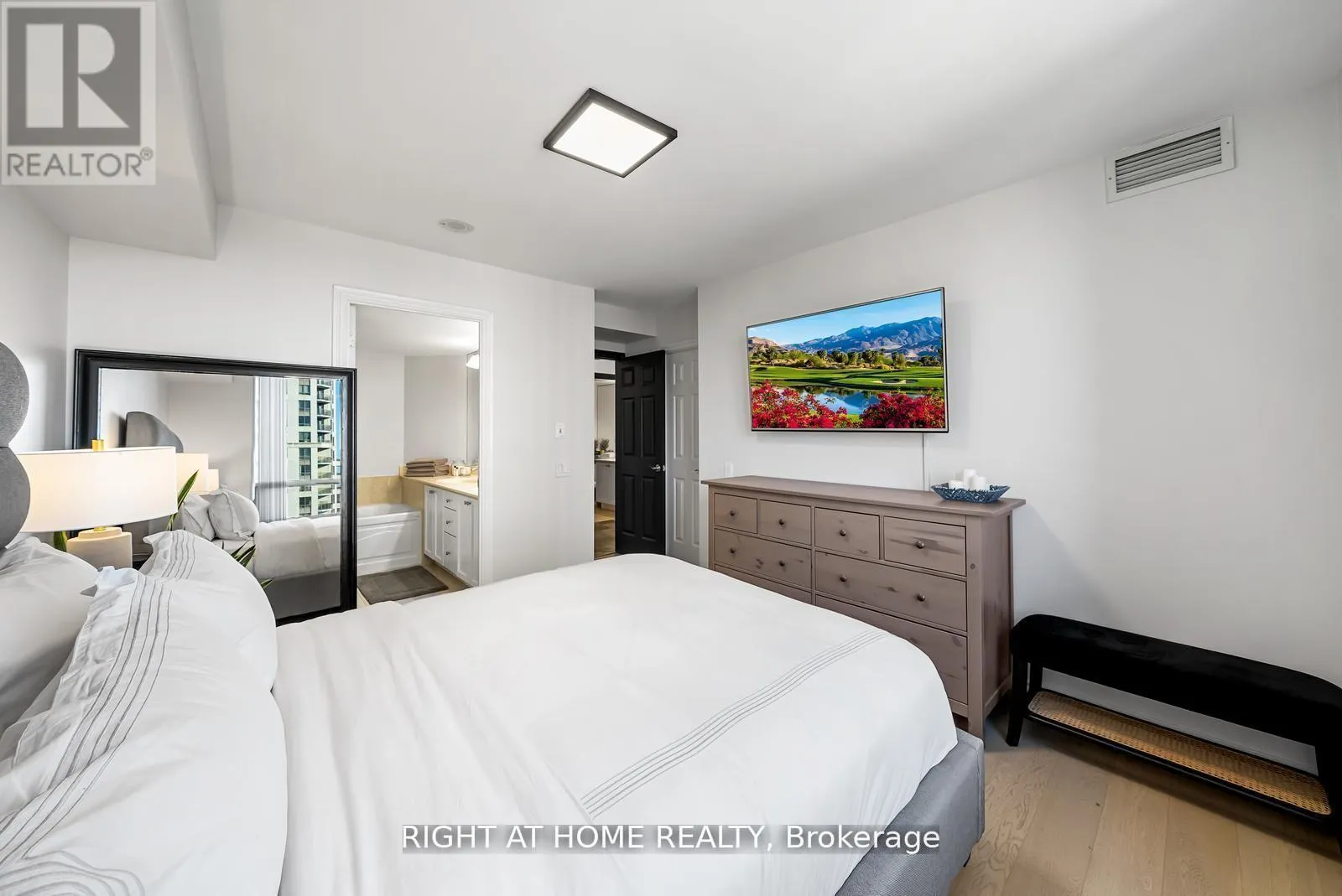 Welcome To Skymark Tridel Residences! This Spacious 1,100 Sq.Ft 2-Bedroom, 2-Bath Corner Suite Offers Unobstructed South-Facing Views Of Downtown Toronto. Enjoy Sun-Drenched Open-Concept Living And Dining Areas, An Upgraded Kitchen With Breakfast Nook, And A Corner Balcony Perfect For City Sunsets. The Primary Bedroom Features A 5-Piece En-suite And Large Organized Closet, While The Second Bedroom Is Bright And Spacious.