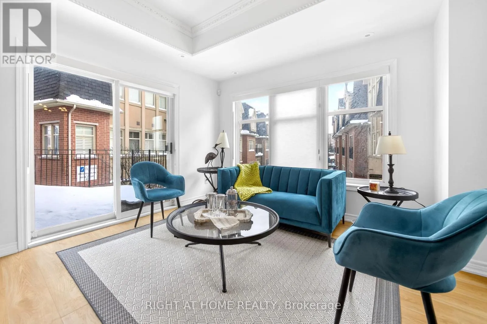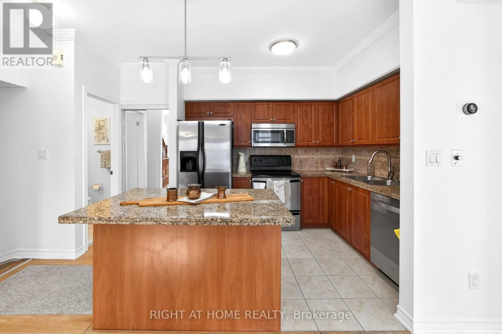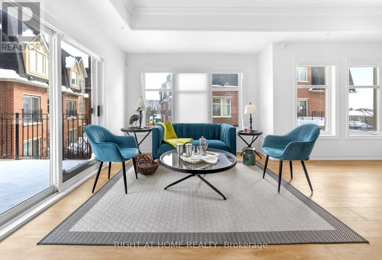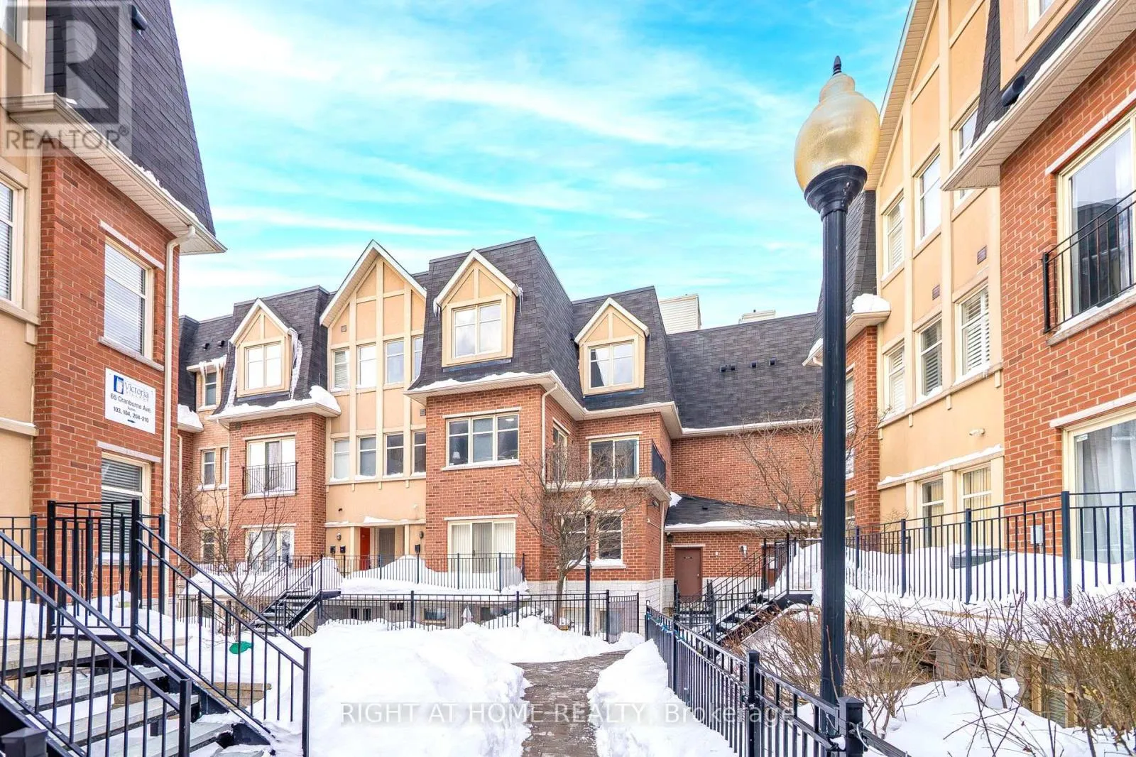 Welcome to your sunny, south facing 1419 sf end unit, quiet courtyard facing open concept home in Victoria Village with 4 bedrooms, 3 bathrooms, 2 parking & locker. Generous open-concept main floor with high ceilings, breakfast island, granite counters, stainless steel appliances, under mount lighting and travertine wall mosaic tiles. Main floor seperate room offers work