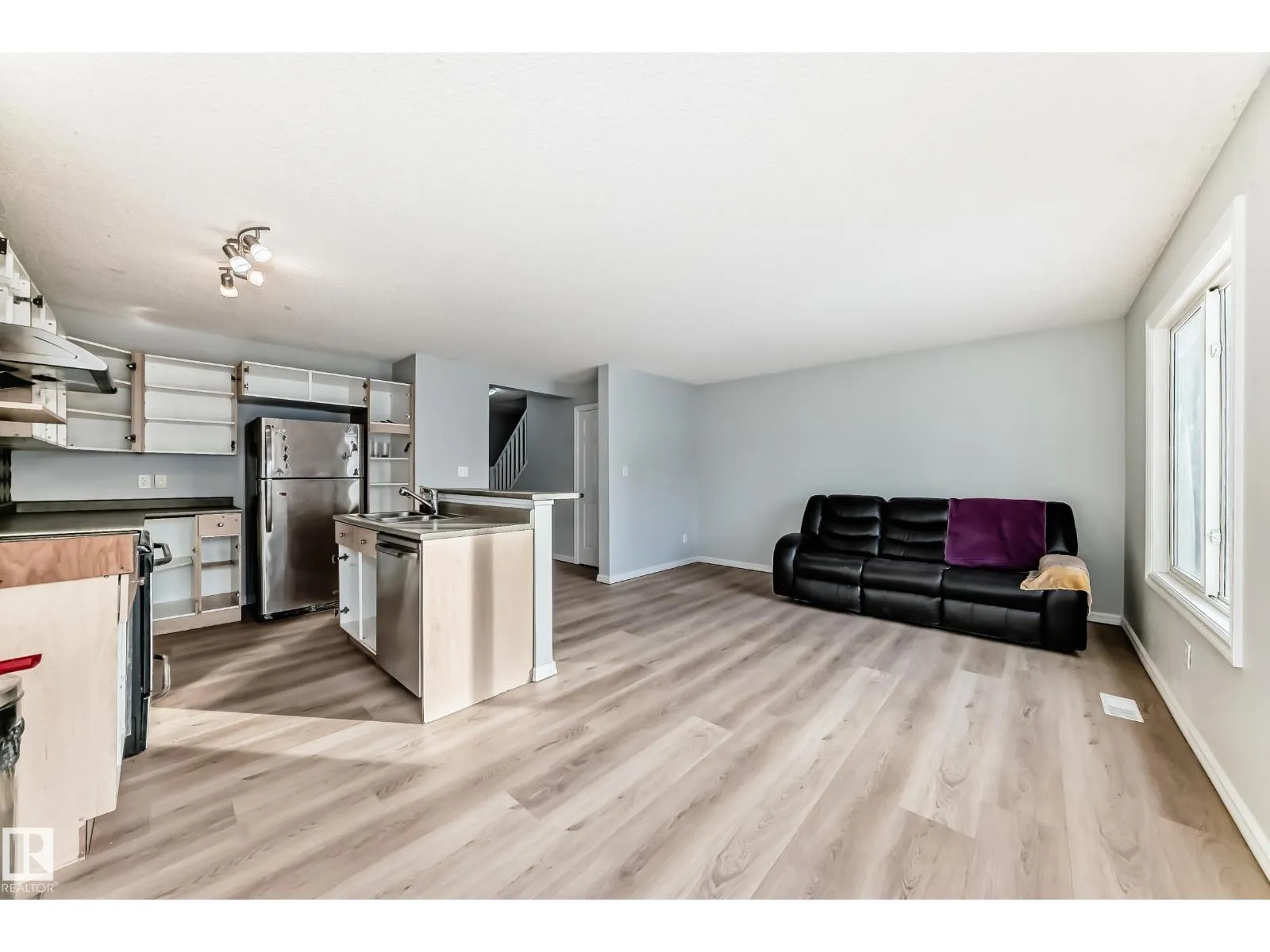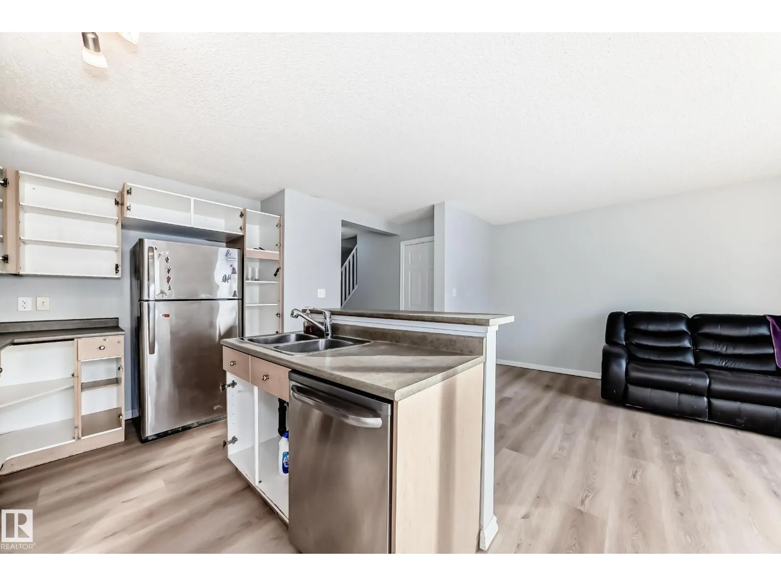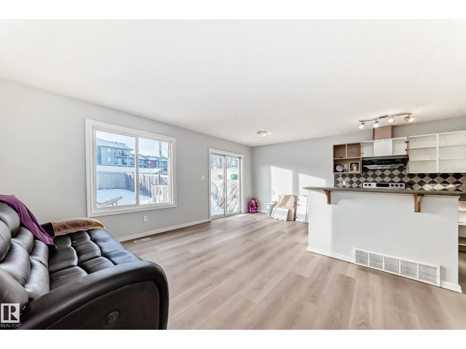 New Paint, New Floors. Two-storey half duplex with no condo or HOA fees. This fully finished home offers three bedrooms, two and a half bathrooms, and a single attached garage. The main floor features NEW VINYL flooring throughout, a spacious living room, dining area, and a well-designed kitchen with stainless steel appliances, tile backsplash, and breakfast bar. A convenient