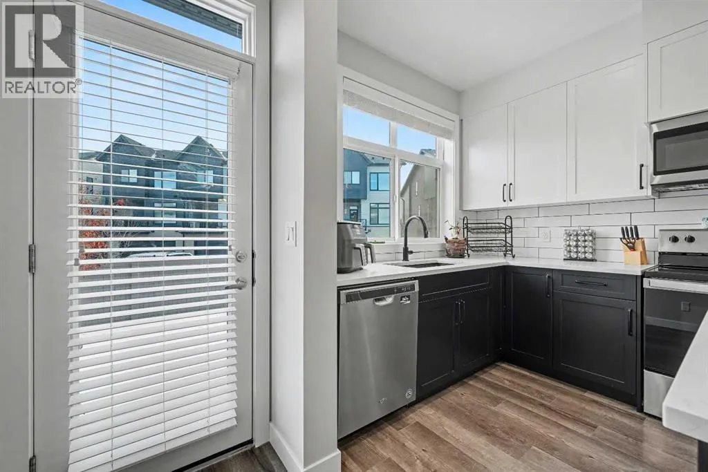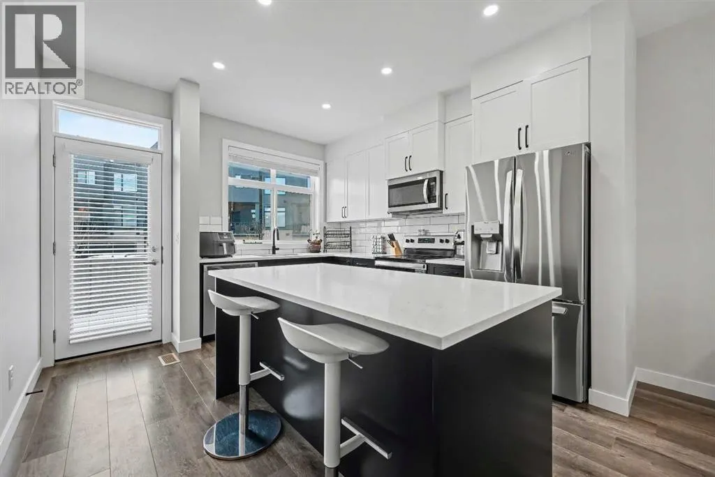Boasting almost 1,700 sqft of thoughtfully designed living space, this 3 bedroom, 3.5 bathroom townhome offers a bright open layout with contemporary finishes throughout. The main floor features wide plank vinyl flooring, full height kitchen cabinetry with soft close drawers, and a central island with quartz countertops throughout that works beautifully for everyday living and entertaining. From the kitchen, step