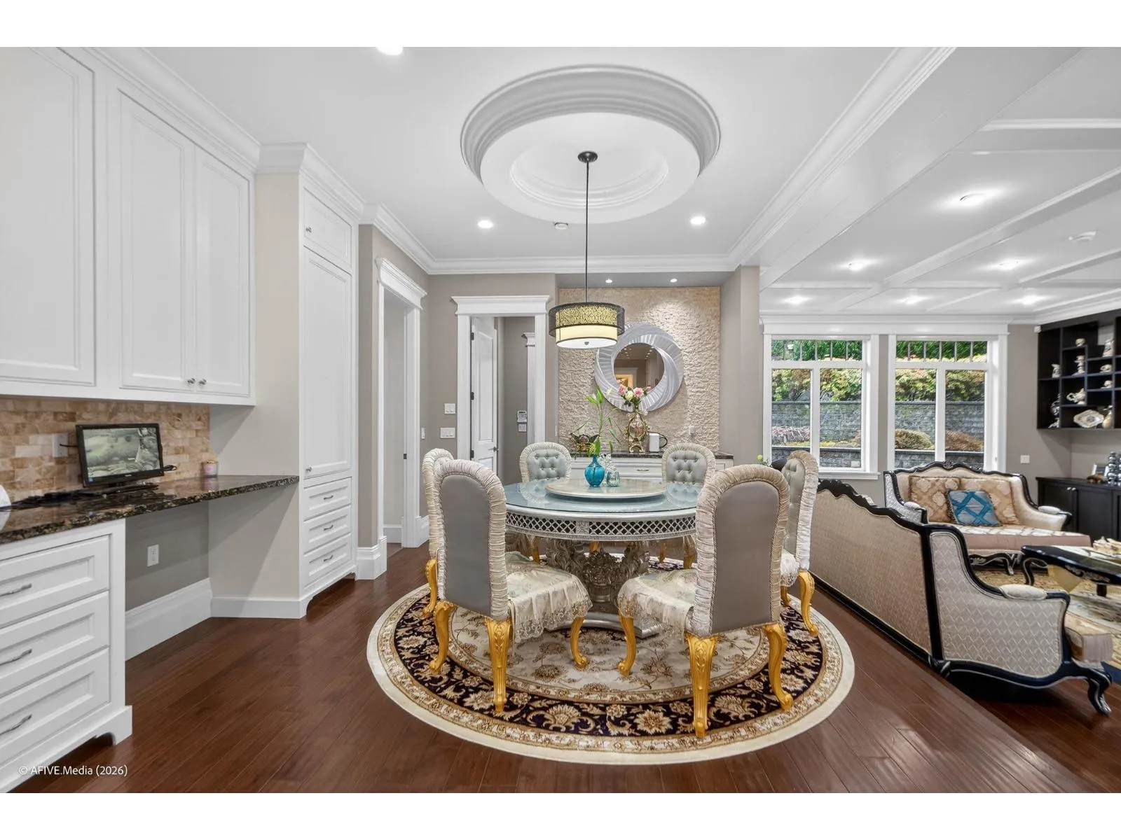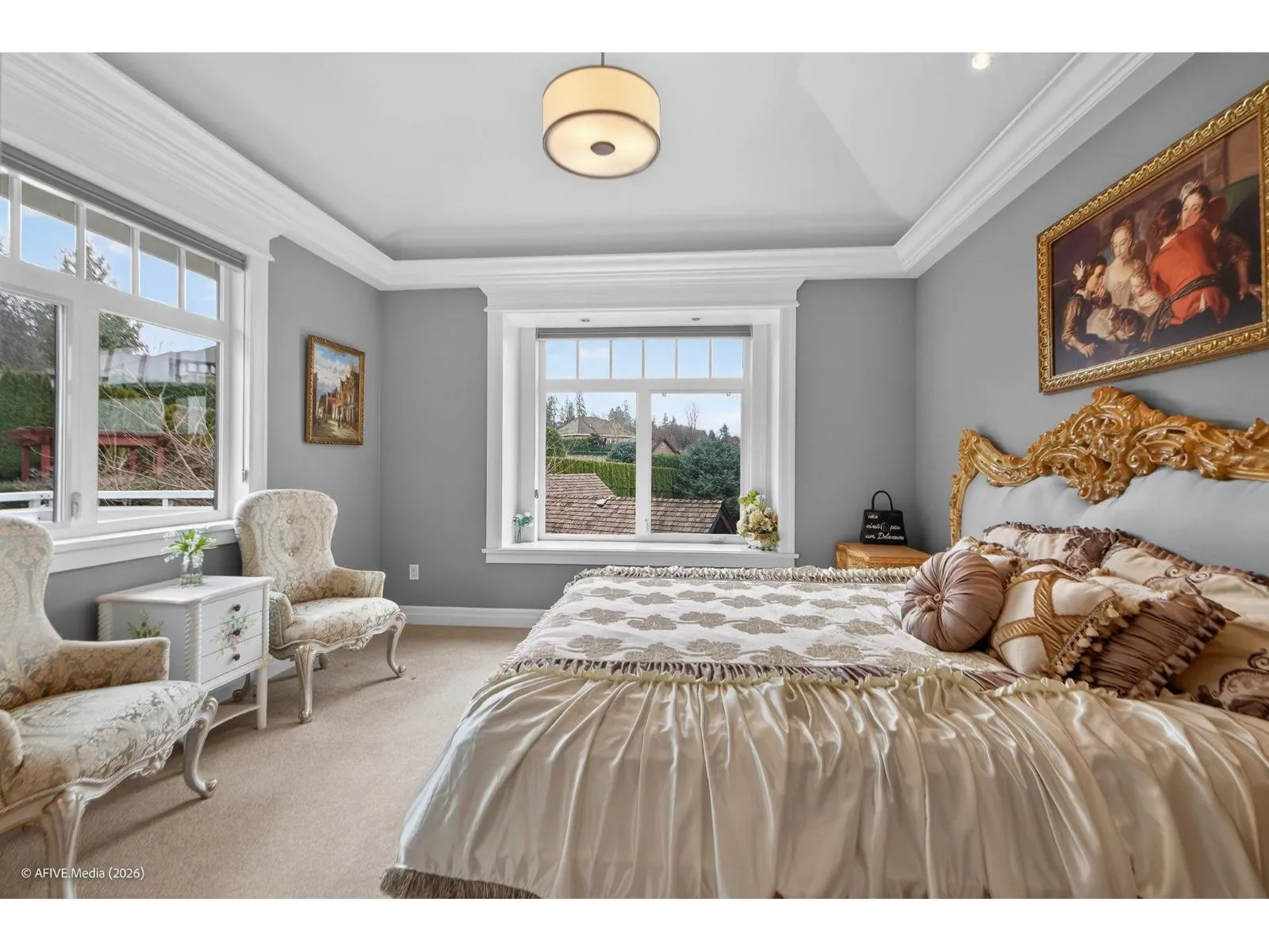 South Surrey Estate perched on a 31,624 sq.ft. south-facing lot at the top of a quiet cul-de-sac. Enjoy unobstructed panoramic mountain views of Seymour, Grouse & Cypress. Impressive 8,103 sq.ft. residence offering 7 bedrooms & 7 bathrooms, plus a 596 sq.ft. 2-bed & 1-bath coach house above a detached 4-car garage. Thoughtfully designed with a wok kitchen, bedroom on the
