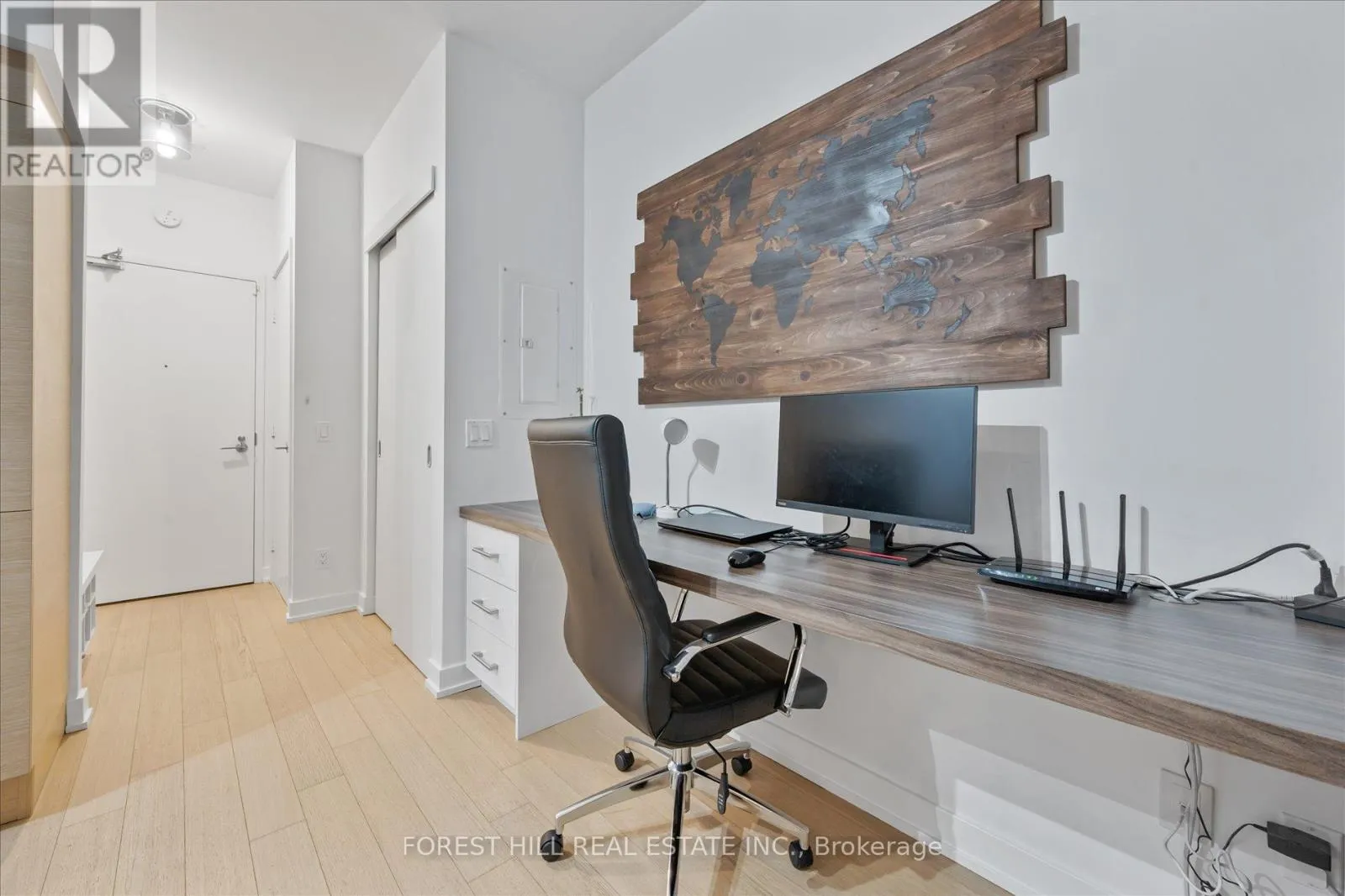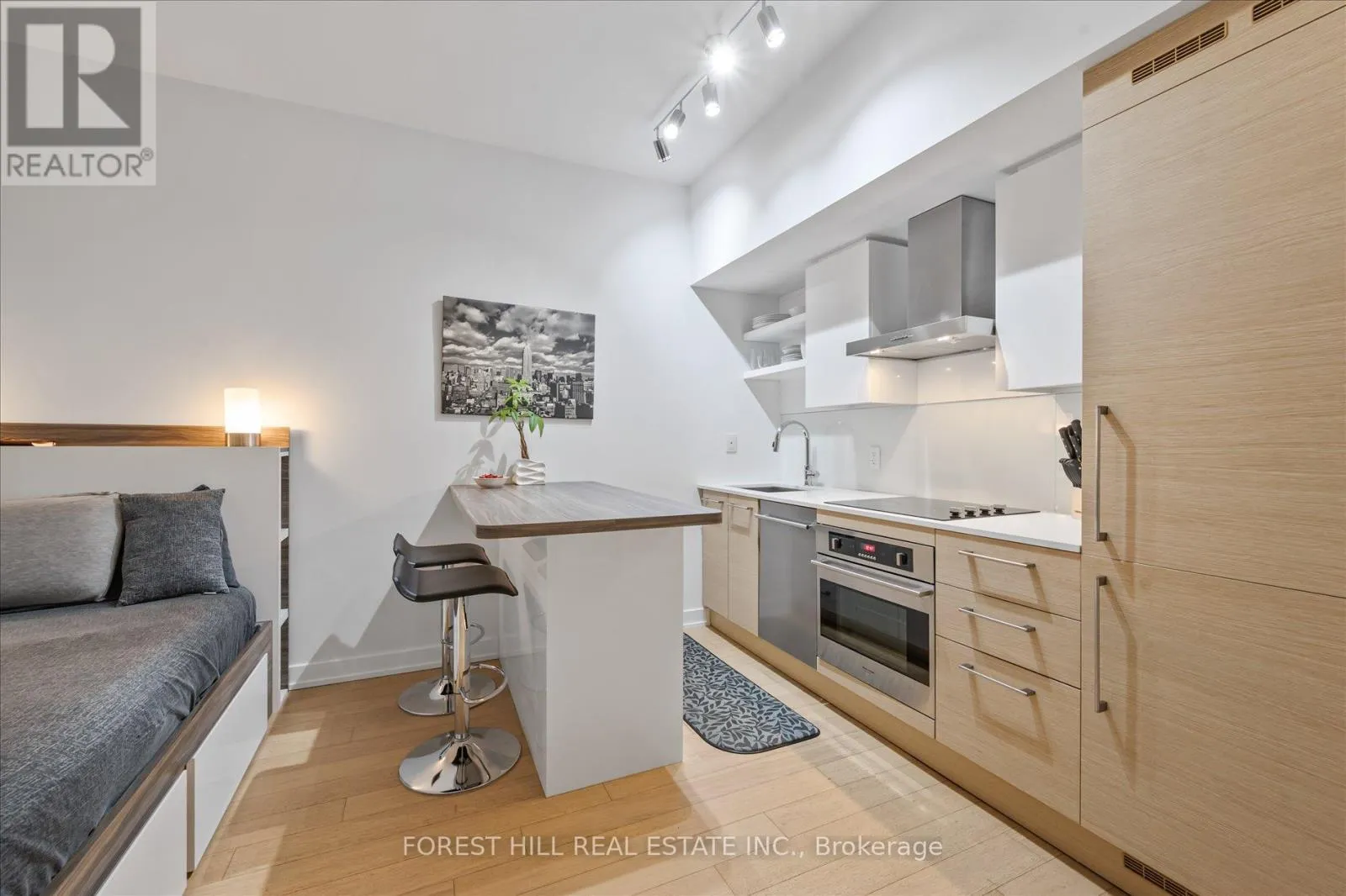 One-Of-A-Kind King West Studio. Nestled In The 6ix, Facing Shank St Off Shaw St, This Studio Is Perfect For WFH And Retreat From The Hustle And Bustle Of City Life. Unit Features Custom Built-Ins: Kitchen Island, Desk, Wardrobe, Bookcase And Bench With Shoe Cubbies! Hardwood Flooring. 24 Hour Concierge, Security and Fob-Entry Elevators. Convenience At Your Doorstep: Supermarket Downstairs. Starbucks