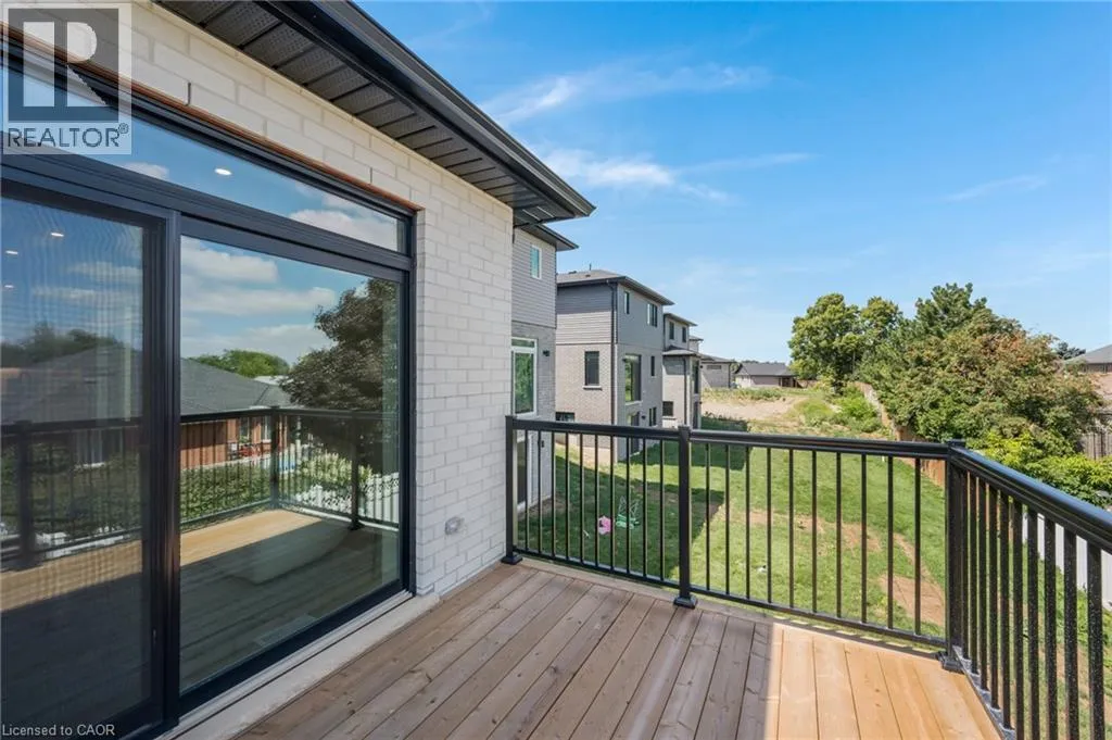 ideal for both everyday living and entertaining. The kitchen is complete with a large island, upgraded cabinetry, stainless steel appliances, and quality finishes that add both style and functionality. The primary bedroom includes a walk-in closet and private ensuite, while the additional bedrooms offer generous space and storage. Step outside to enjoy the main-floor deck, perfect for relaxing or hosting guests. The walk-out basement provides excellent future potential for additional living space, whether for a recreation room, home office, or personal gym. Conveniently located near parks, schools, and shopping, this home is also just minutes from Cambridge Memorial Hospital and a short drive to Highway 401, making it an excellent option for commuters. A fantastic opportunity to own a brand-new home in a growing and well-connected neighbourhood. (id:62650)