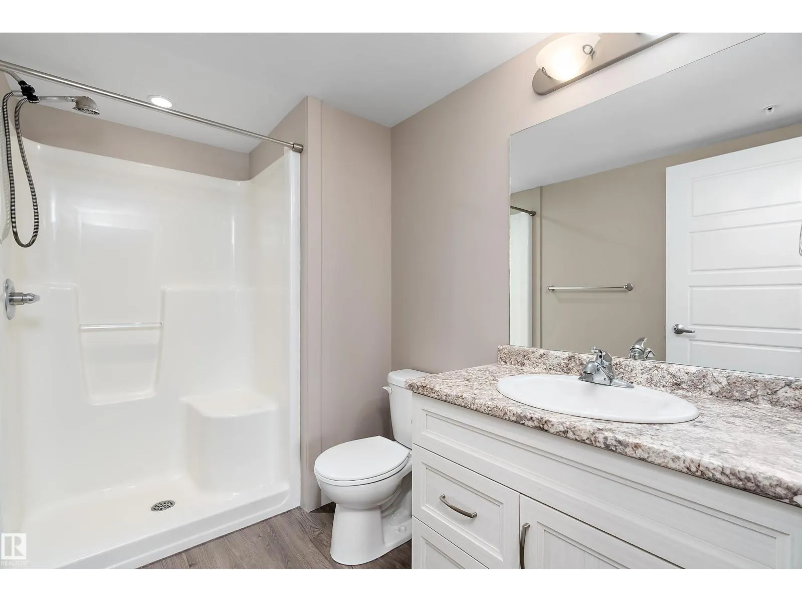 This unique two-bedroom, two-bathroom floor plan offers an airy, open layout designed for comfortable everyday living. Built for durability and quiet enjoyment, the building features 8-inch concrete hollow-core floors and steel stud construction. Inside, you’ll find modern cabinetry, a chef’s island, vinyl plank flooring, generous closet space, and a primary ensuite with a four-foot walk-in shower. Enjoy west-facing outdoor living