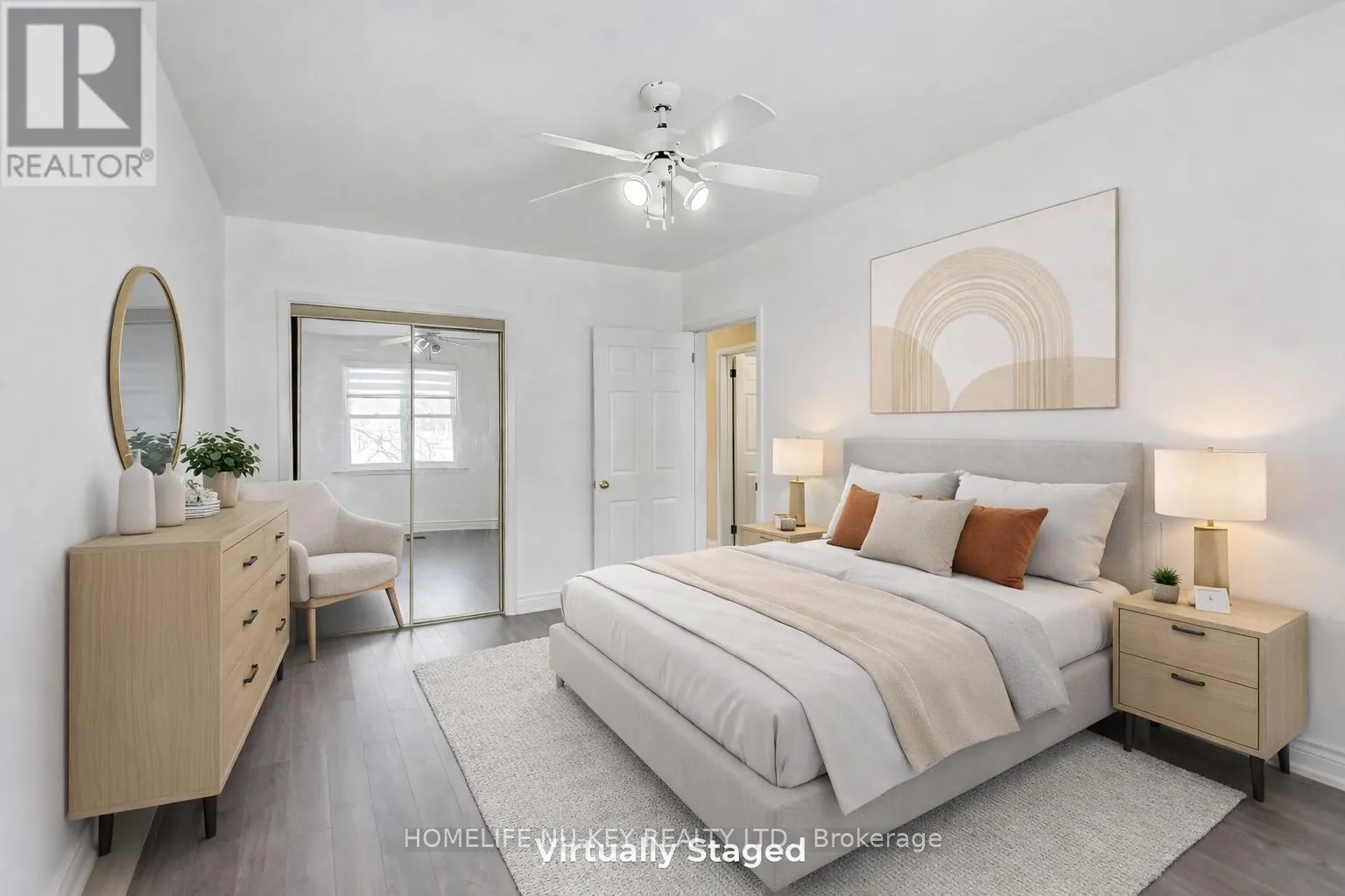 Bright and beautifully maintained 3-bedroom, 2-bath semi-detached home in the highly sought-after Clarkson community. The main level showcases a modern, updated kitchen (2017) featuring contemporary cabinetry, stainless steel appliances, quartz countertops, and porcelain tile flooring. The spacious living room flows seamlessly into a dedicated dining area, highlighted by durable AC4 laminate flooring, updated baseboards throughout the main and second levels,