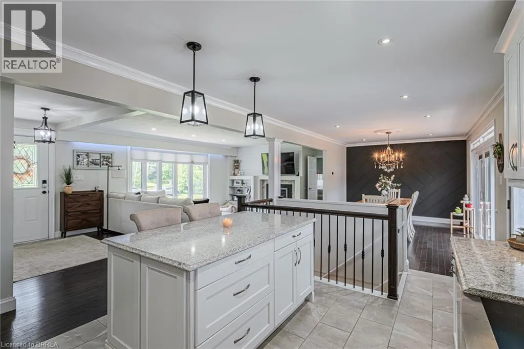 Set on nearly two acres of picturesque pastoral land, this beautifully renovated 4+1 bedroom ranch bungalow offers the perfect balance of modern luxury and serene country charm. The heart of the home is a bright, open-concept living, dining, and kitchen space and flooded with natural light. Designed for both everyday living and entertaining, this inviting area features a gourmet