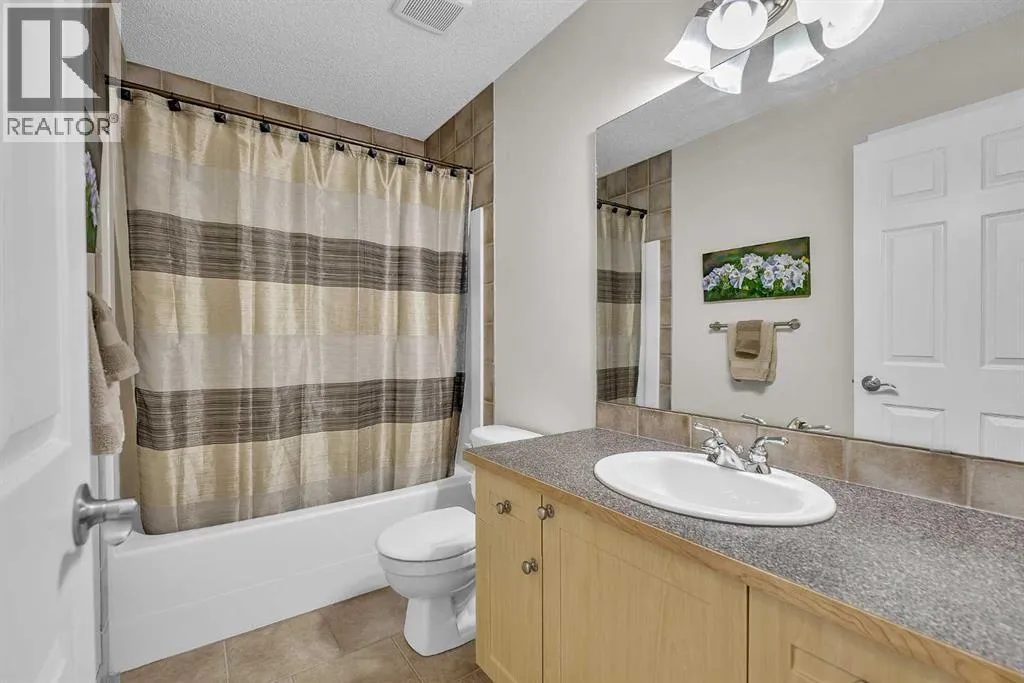 the back wall showcasing the south-facing backyard and the green space beyond. Luxury vinyl plank flooring in the living room pairs with the gas fireplace for a sense of cozy warmth. Light maple cabinetry in the kitchen provides a homey elegance, and the eat-up island is sure to be the hub of your gatherings. Newly upgraded appliances include an induction range, and a full pantry makes staying stocked up on snacks easy. Full height windows and a glass pane patio door merge your indoor and outdoor spaces, allowing your summer get-togethers to flow from snacks in the sunny dining area to alfresco eating. New paint throughout enhances the fresh aesthetic, and all the windows are new triple pane. A powder room on this level adds convenience, and the entryway from the double-attached garage includes a washer and dryer and added storage cupboards. Upstairs, the bonus room has its own wing along the front of the house, ideal for families with different bedtimes. New carpet on this level feels luxurious, as do the custom Zebra blinds throughout the home. The primary bedroom is spacious and serene, overlooking the pathway behind the house. This self-contained retreat is complete with blackout blinds, a walk-in closet, and a full ensuite bathroom. Two more bedrooms are generously sized, and the main bathroom design is timeless; perfect for a busy household. Downstairs, the finished basement is the ultimate chill zone. Architectural ceilings and recessed lighting add unique interest, and shiplap wainscoting elevates the style. A dry bar makes this space the perfect game day hangout. Another bedroom and remodeled bathroom are fanta stic for guests or a bigger family. Functional upgrades include a Kinetico water softener. Outside, a picturesque, professionally landscaped yard is sure to be your favourite spot. A huge, tiered deck offers lounging, grilling, and eating areas. Kids or pets will love playing in the lush lawn, and the retaining wall was done in a low maintenance style. Stone stairs give you direct access to the green belt and pathway that connects throughout the community to parks, playgrounds, and the local hiking area. This home is also only steps to the newly renovated community centre and the Country Hills shopping area, which holds a vast array of stores, restaurants, and services. Both public and Catholic schools and the transit terminal are nearby – convenient for families and commuters – and the Vivo Centre offers recreation facilities, activities, and a public library just up the street. If you leave the community, Deerfoot and Stoney Trails are close, connecting you to the rest of the city. (id:62650)