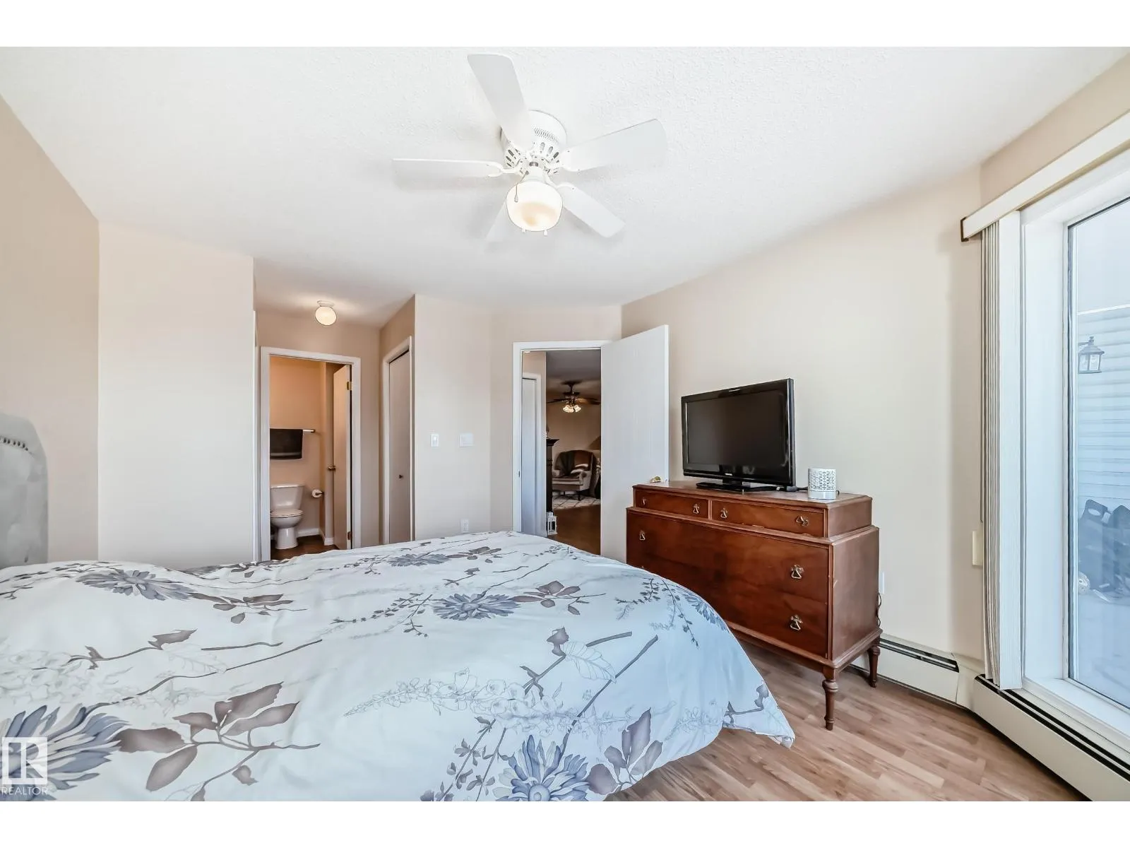 Gorgeous lake view & abundant natural light fill this beautiful home through O/S windows & a private deck overlooking the lake. The suite features laminate flooring throughout, a spacious living room with sliding doors to the deck, a dedicated dining area, & a well-appointed kitchen complete w/three appliances, ample cabinetry, and space for a cozy bistro table. The inviting primary