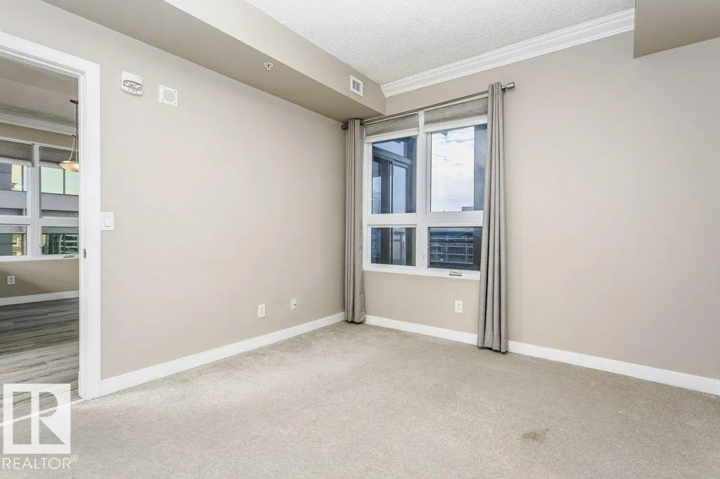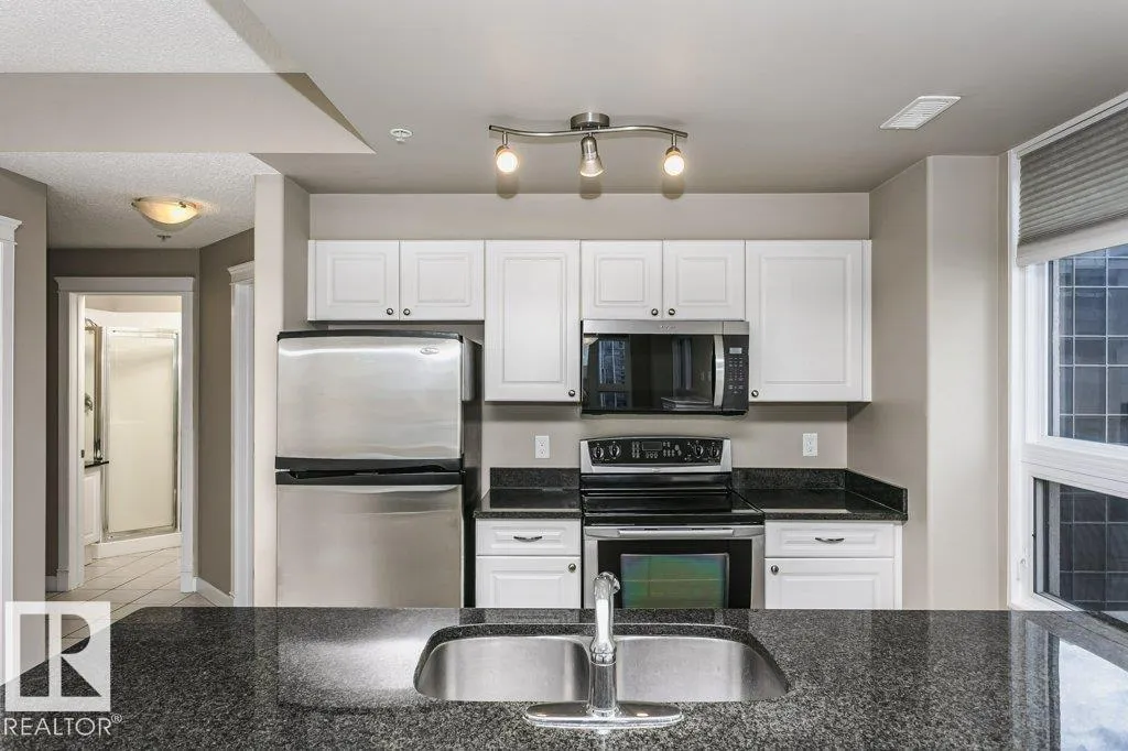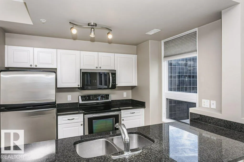Discover this well-maintained 843 sq ft, 2-bedroom, 2-bathroom high-rise apartment with a titled indoor heated parking spot in the heart of downtown. This exquisite condo features an open concept kitchen with granite countertops, modern stainless-steel appliances, and elegant cabinetry. The bright and inviting living room opens onto a spacious balcony, offering views of west of downtown from the 12th floor.