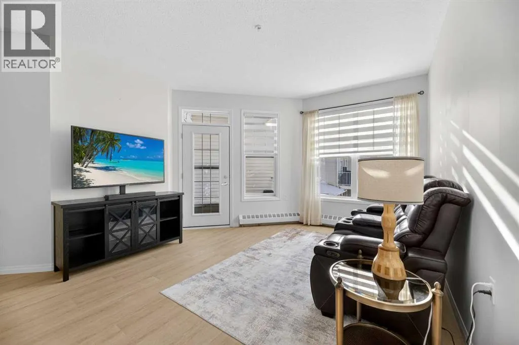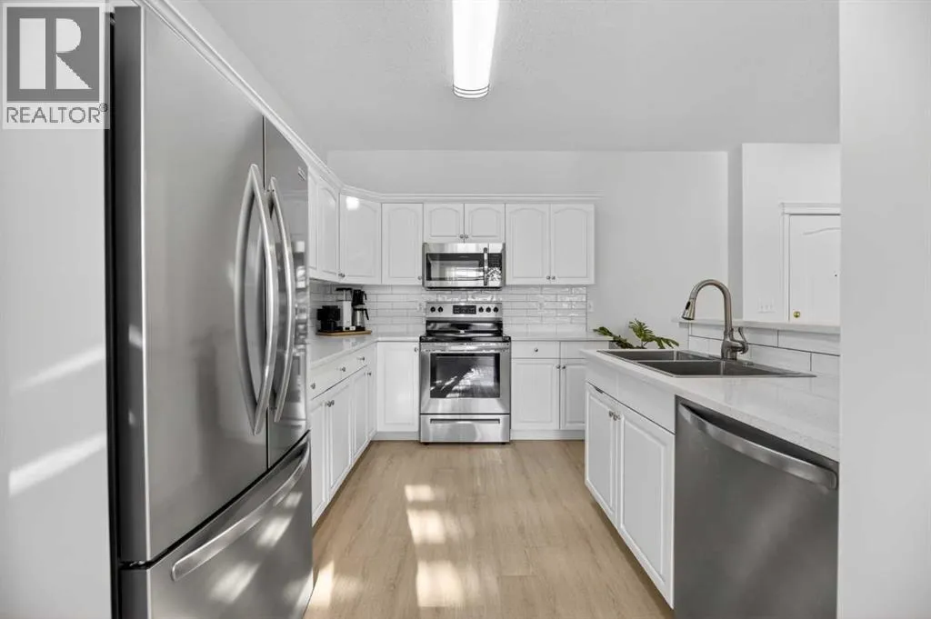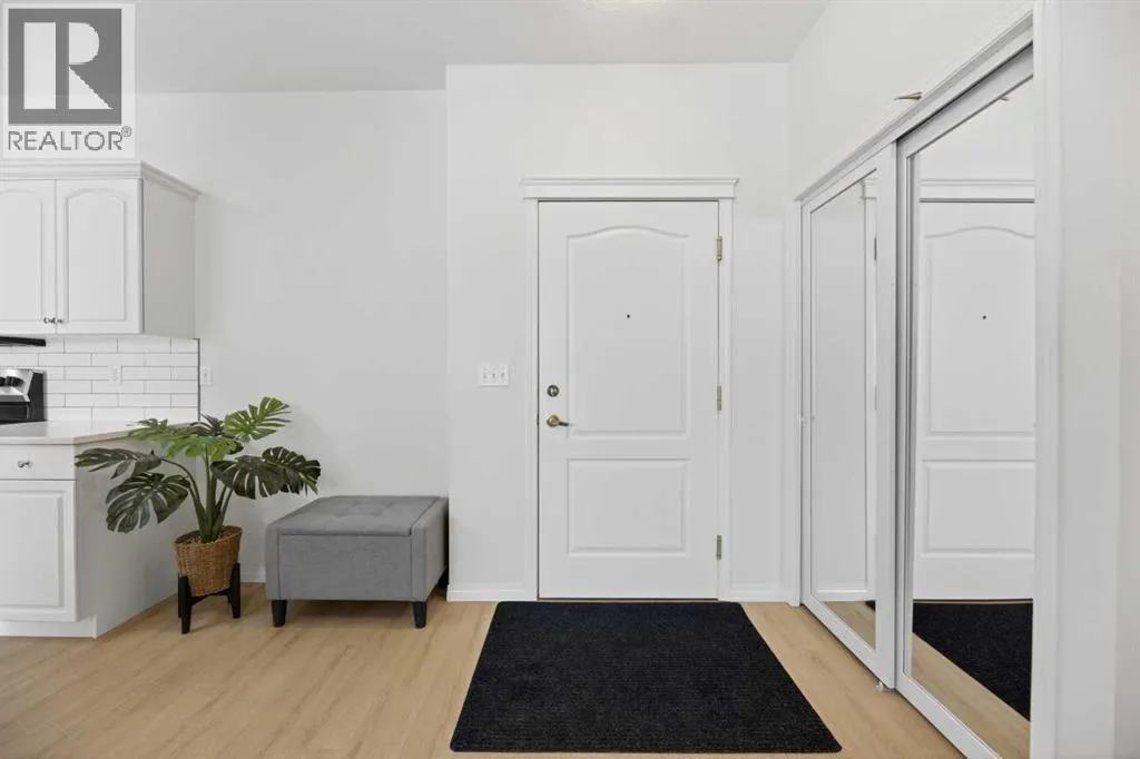 parking stall just steps from the front entrance. The 55+ complex has absolutely ALL of the LUXURY AMENITIES you would require including an owners’ lounge with fireplace, a kitchen facility, dining room (seats 50), shuffleboard, billiards, workshop, well-equipped fitness room, puzzle/games room, library room, hair salon, and laundry facility for the bigger loads, etc… PLUS, you have access to TWO rental guest suites for only $65.00 per night when family or friends come to visit. As you enter your BRIGHT, warm and inviting condo you are greeted by a nice sized entrance with mirrored closet…your OPEN LAYOUT features the kitchen off to the side which is open to the living & dining areas that separate the bedrooms – absolute perfect set up for entertaining family & friends! Your LARGE primary bedroom retreat features a spa-like en suite w/ large walk-in tub & shower combo and extra storage cabinets. You will also love the storage your walk-in closet provides. Your second bedroom (or office) is the perfect size, and is located across from the main 3-piece bath. Enjoy the convenience of a generous sized laundry room w/ built-in cabinets, and full sized washer & dryer. The luxurious updates throughout your new home include NEW paint throughout, luxury vinyl plank, carpet, stainless steel appliances, quartz kitchen countertops, modern white subway tile back splash, beautiful spa-like washroom updates, baseboards, updated lighting, designer window coverings, outdoor sun shade on balcony, etc……YOUR NEW HOME LITERALLY HAS IT ALL! Sit back and relax whilst enjoying a nice drink on your covered bal cony that overlooks the beautiful garden area. This complex is ADULT LIFESTYLE at its absolute FINEST! Feel like being social? Each night the complex offers different social activities such as bingo, movie night, crib/cards, happy hour, etc…. Feel like going out? You are minutes away from all of the conveniences that family-friendly Olds has to offer — grocery stores, clothing shops, restaurants, Olds College, historic theater, and all emergency services (Olds Hospital, etc.). Quick access to Highway 2, and Calgary airport is only 60 mins away! Don’t miss out on the opportunity to wake up to the warmth and aesthetic pleasures of Legacy Village — it feels like being on VACATION every single day! NOTE; CONDO FEES INCLUDE ALL UTILITIES — PLUS CABLE!! Your unit also comes with it’s own assigned storage locker! Enjoy a safe and quiet environment in your very well kept & well-managed complex– not many units come available in this complex. You will LOVE this JEWEL OF A HOME! (id:62650)