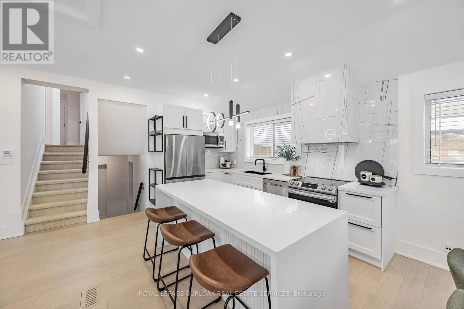 Beautifully upgraded detached home, fully renovated in 2023, situated on a premium 117 x 60 corner lot. This stunning residence showcases luxury finishes throughout, including engineered hardwood flooring and soaring 9.5-ft ceilings that enhance the bright, open-concept main floor layout. Flooded with natural light from numerous new thermal windows (2023) and beautiful stone fireplace, the home invites you in. The