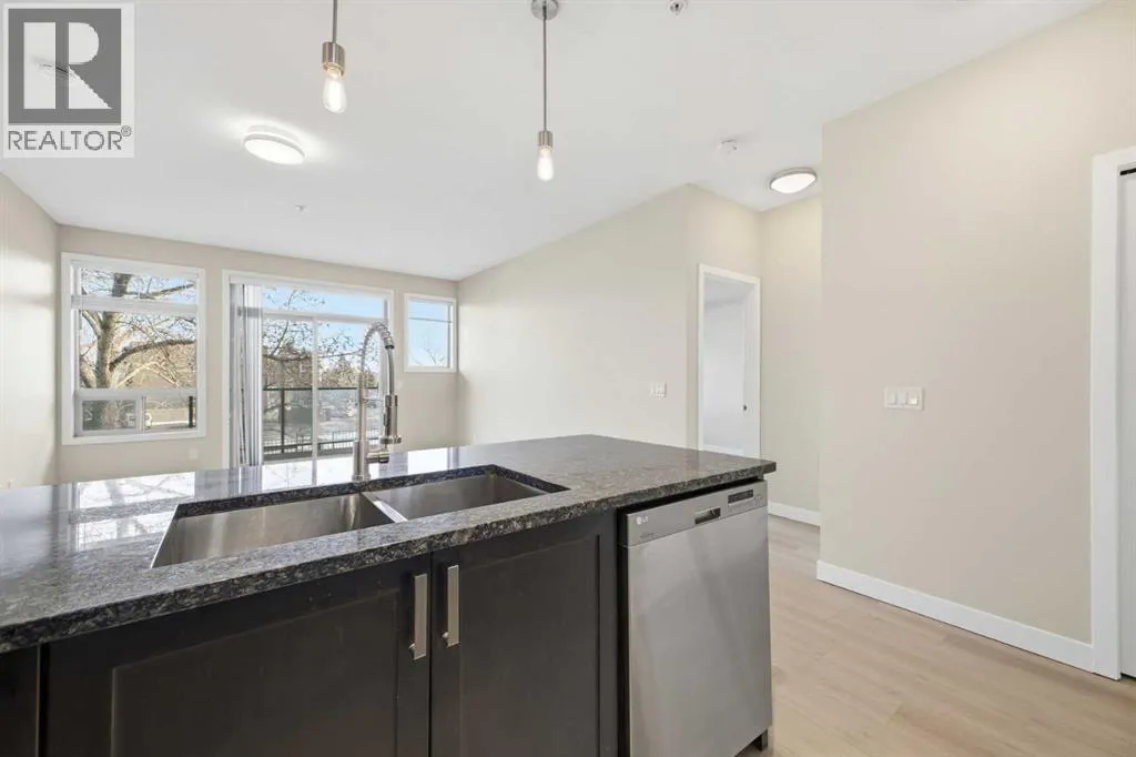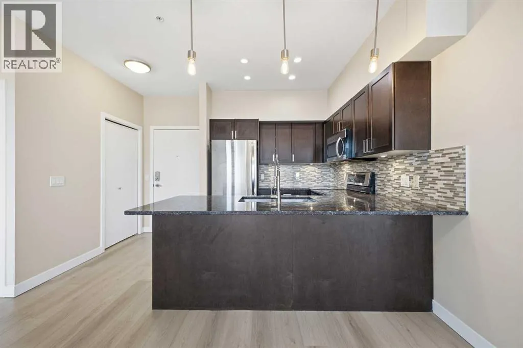 **End unit** Ground-floor end unit in the desirable community of Highland Park offering 2 bedrooms, 2 bathrooms, plus a den. This well-designed home features dual entrances with direct access from the heated parkade and a private patio entrance. The kitchen includes granite countertops, stainless steel appliances, a double deep sink, and pantry, opening to a spacious living area. The primary