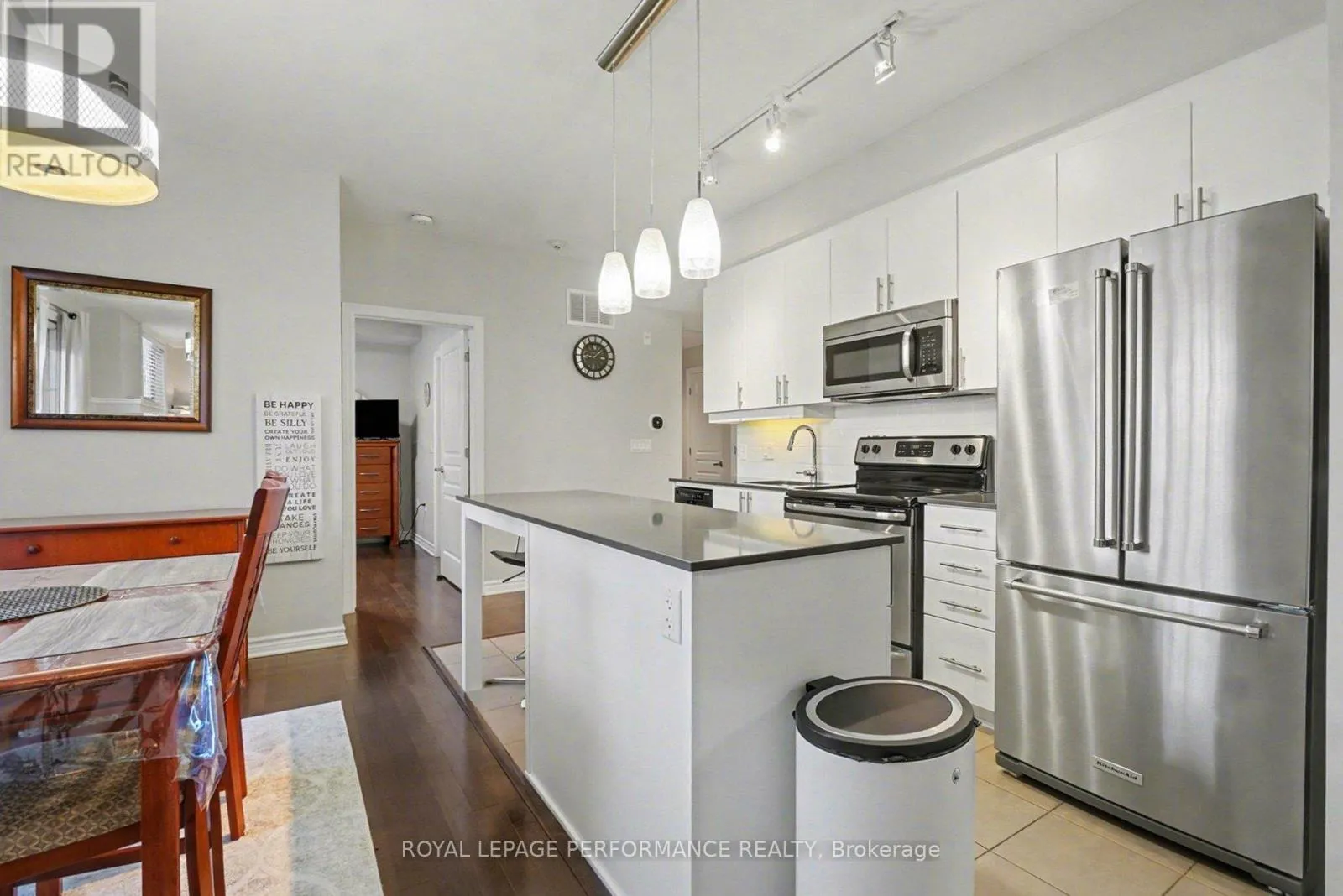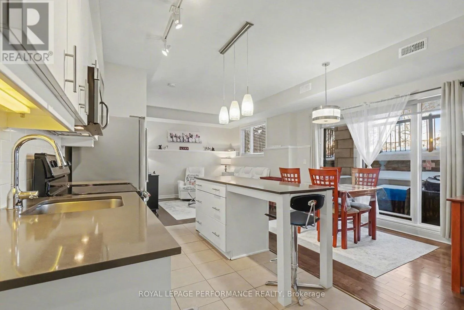 Perfectly Located Condo! Just steps away from the O-Train Cyrville Station, this exceptional unit features 2 bedrooms and 2 bathrooms, and is ready for you to move in. The bright, open-concept layout is accentuated by high ceilings, creating a spacious atmosphere. The kitchen is a highlight, showcasing quartz countertops, a breakfast bar, and stainless steel appliances. Elegant hardwood flooring flows