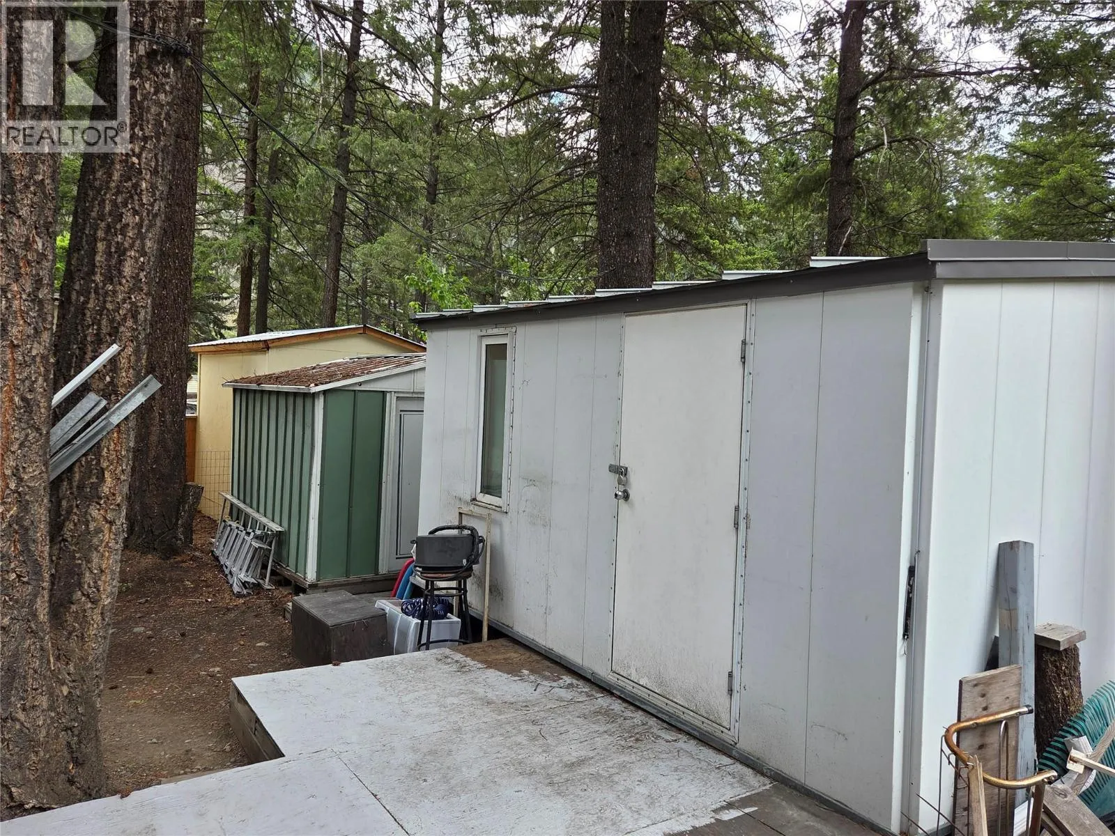 Just over 1,000 square feet, 2 bedroom home in quiet Whispering Pines park. Central Air, gas furnace and fireplace, and a large covered deck out back. The lot is treed, private, and lots of room for gardening or just to have space. 3 outbuildings, a storage shed, workshop with heat, power, 2 doors and 2 windows and a great metal