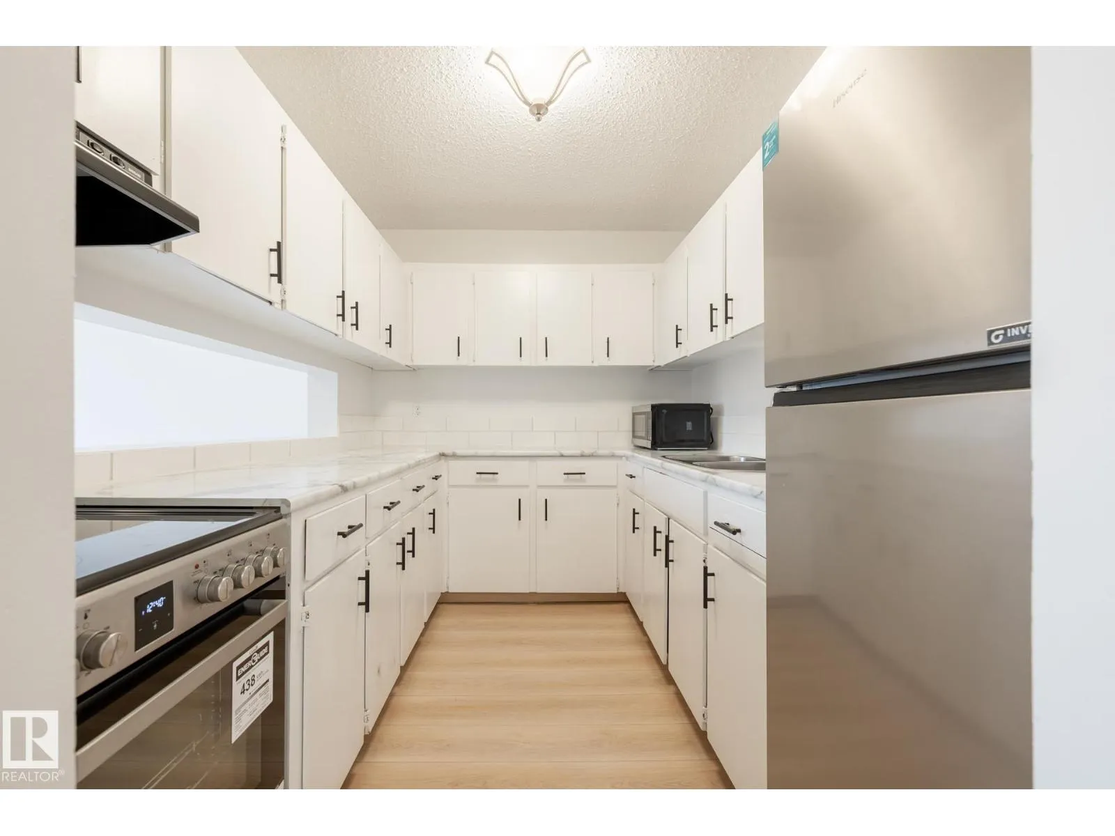 Amazing TOP FLOOR 1 bedroom condo, and only a 2 minute walk to Rogers Place. UPGRADES INCLUDE FLOORING , STAINLESS STEEL APPLIANCES and BATHROOM VANITY and FIXTURES. This front facing unit is a great fit for first time buyers or investors seeking an investment close to Rogers Place. Other features and upgrades include a large STORAGE/FLEX ROOM, NEWER WINDOWS, and