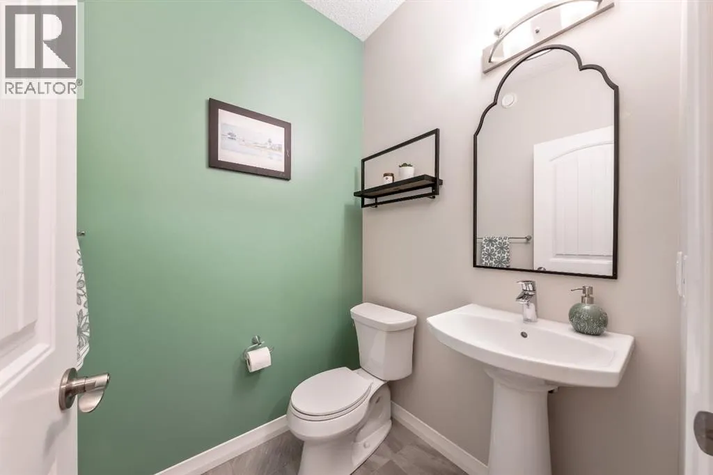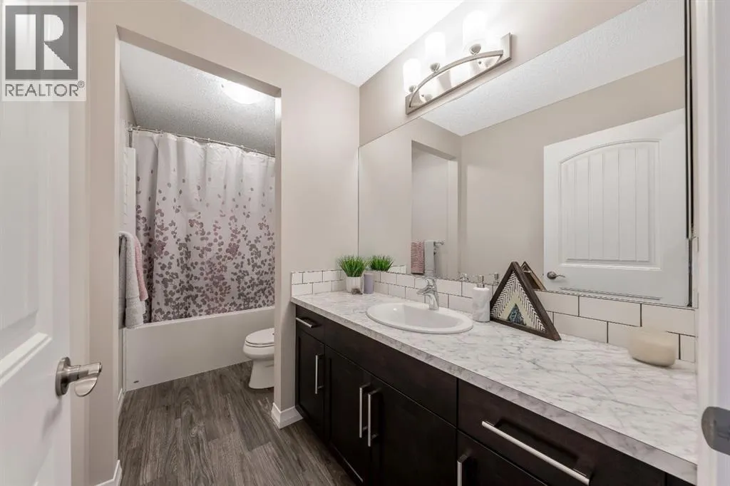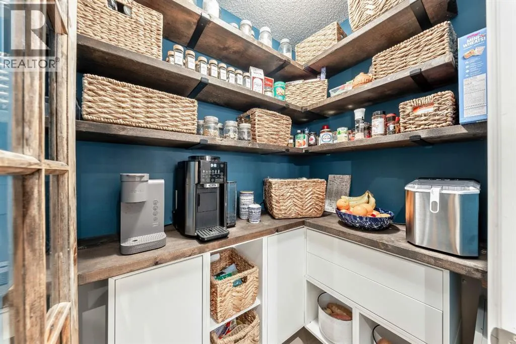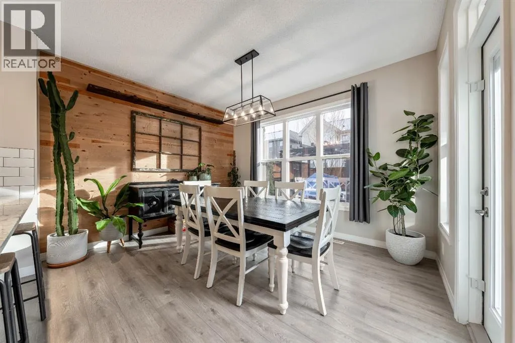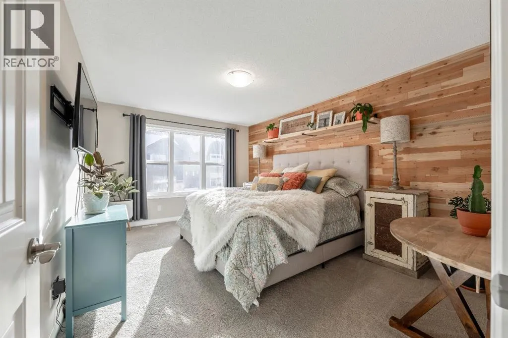 living come together seamlessly here. The main floor offers a warm and inviting living room highlighted by a gas-tiled fireplace, feature walls, custom shelving, and a charming custom barn door at the rear entry adding character and versatility. The kitchen is both stylish and practical, featuring granite countertops, a large island with built-in garbage and recycling pull-outs, espresso cabinetry with glass doors, stainless steel appliances, and a gas cooktop. A custom pantry door and electrical in the pantry complete the space. Upstairs, the spacious primary bedroom offers a relaxing retreat with a large soaker tub, his-and-hers sinks and vanity spaces, and his-and-hers walk-in closets. Two additional generous-sized bedrooms, a full four-piece bathroom, and convenient upper-floor laundry complete the upper level.The unfinished basement is ready for your design ideas and includes a bathroom rough-in and provides excellent potential for future customization. Additional highlights include a rough-in for air conditioning and a recently serviced tankless hot water heater.The oversized double attached garage is truly a standout feature, measuring approximately 20’ x 23’ with an impressive 15’ ceiling height. Professionally finished, this space has been extensively customized with an epoxy-coated floor, hot and cold water with additional shut-off valves conveniently located in the basement, and frost-free taps in the garage for added peace of mind. Heating is provided by a Schwank 40,000 BTU radiant tube heater with thermostat ($10k value), c omplete with a permitted fresh air intake. A dedicated 220V outlet on its own breaker has also been installed, offering excellent flexibility for future use. Tire hangers mounted beside the wall-mounted black cabinet are included. The backyard has been thoughtfully designed to create a private and inviting outdoor retreat, framed by mature trees for natural privacy. A custom cedar deck anchors the space, complemented by a covered pergola featuring substantial Douglas fir beams and a solid fir structure. Carefully planned landscaping and a structured drainage system enhance both the beauty and long-term functionality of the yard and a structured drainage system designed to prevent water issues. Additional features include reflective tint on all windows to help keep the home cool in summer months, and a transferable business permits. Riviera is the upscale community you will love to call home, just steps from the gorgeous Bow River and a short drive to Calgary and the Rocky Mountains. (id:62650)