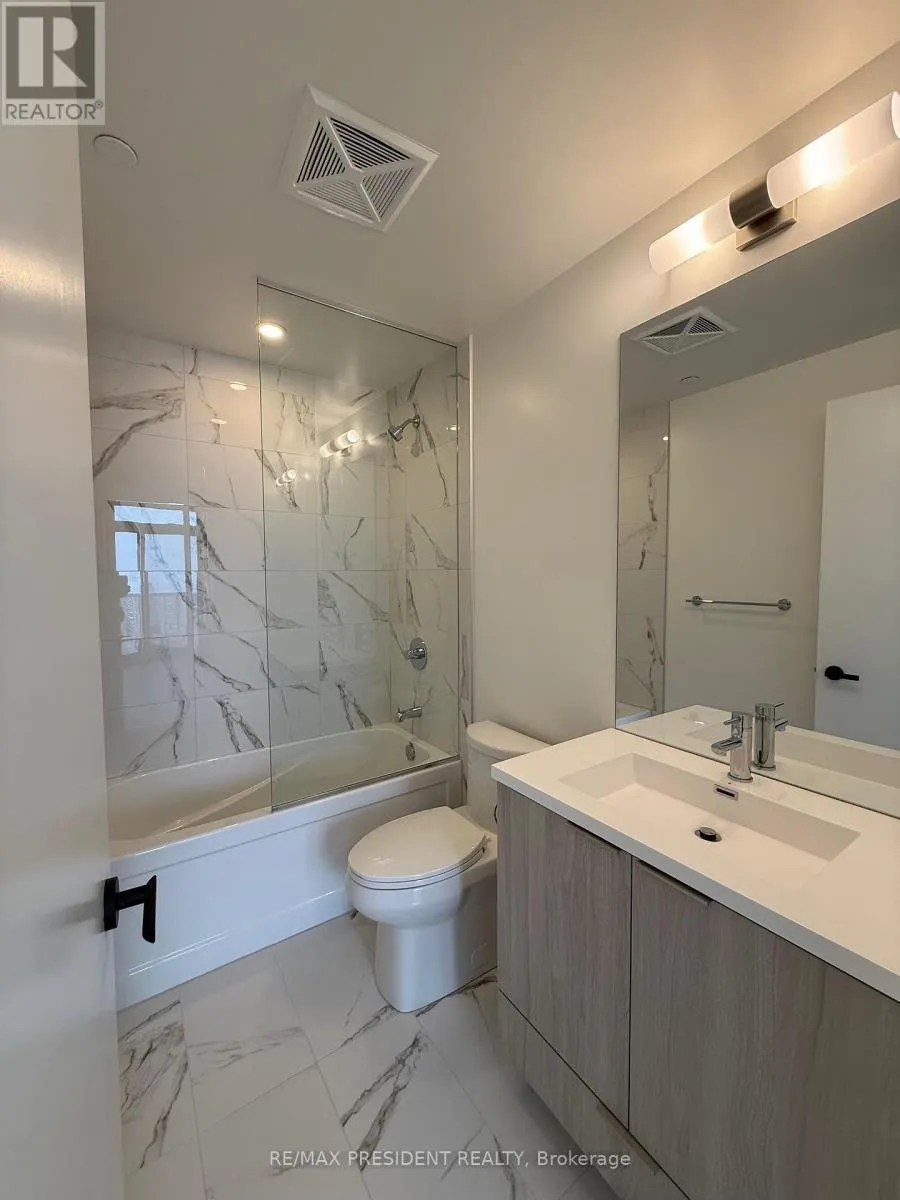 Bright 2 bedroom , 2 bath condo on the 51st floor in the heart of Vaughan Metropolitan Centre. Features 699 sq. ft. of living space plus a 115 sq. ft. South east-facing balcony with sunrise views. Open-concept kitchen with quartz countertops and built-in stainless steel appliances, floor-to-ceiling windows, and a den with door-ideal as a second bedroom or office. Enjoy