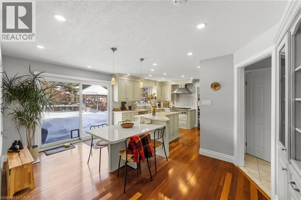 Welcome to an exceptional, thoughtfully updated and impeccably maintained home located in the highly sought-after Lover’s Lane area of Ancaster. This timeless residence offers a rare combination of quality craftsmanship, thoughtful design, and resort-style amenities. The heart of the home is a custom chef’s kitchen featuring premium built-in appliances, stone countertops, and an oversized island, seamlessly flowing into warm and