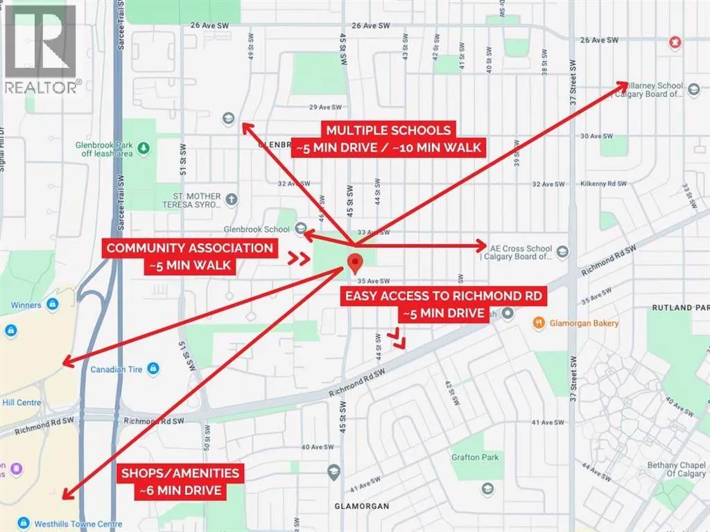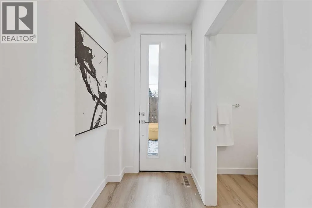 a single detached garage, PLUS one lower-level unit directly below (#102) boasting a sunny main floor plus a FULLY FINISHED BASEMENT totalling nearly 1,000 sq ft of developed living space, with 2 beds & 2.5 baths. Live in one and rent the other, or combine both for personal use and have a 4-bedroom townhome with over 2,000 sq ft of living space! Both units feature a sunny and bright open-concept living space, with sleek, low-maintenance luxury vinyl plank (LVP) flooring and large windows. The fully equipped modern kitchens boast dual-tone slab-style cabinetry, quartz countertops, and Samsung stainless steel appliances, including a French-door refrigerator and ceramic-top stove. Completing the main floor of both units is a spacious dining area perfect for family meals and entertaining, a living room with large windows for ample natural light and a stylish 2-piece powder room. The upper-unit level (#109) features a lacquered spindled railing leading to the sunny upper floor, where 2 bedrooms and 2 full bathrooms await. The primary bedroom boasts a 3pc ensuite and a private balcony. Down the hall is a well-sized 2nd bedroom boasting easy access to the main 4pc bathroom. Each bathroom features custom cabinetry, quartz countertops, undermount sinks, and fully tiled showers. The lower-level unit (#102) fully developed basement features 2 bedrooms and 2 full bathrooms. Each bathroom boasts custom cabinetry, quartz counters, undermount sinks, and tiled tub/showers. Plus, both units feature a convenient in-suite laundry closet with a stacked washer/dryer. Durable and stylish, the exterior fea tures Hardie Board and Smart Board detailing, and brushed concrete steps and walks. Located in the heart of the sought-after SW inner-city community of Glenbrook, these brand-new townhomes boast a fantastic location right across the street from Glenbrook School and the Glenbrook Community Association. A number of major amenities are located within an easy 15-min walk, including Safeway, Glamorgan Bakery, and multiple restaurants including Richmond’s Pub. Plus, nearly every imaginable amenity can be found in nearby Westhills and Signal Hill Centres which are just a 6 minute drive away. Although peacefully tucked away on a lovely residential street, Sarcee Trail and Richmond Rd are both readily accessible, making everyday commuting around the city a breeze! Make this new stacked townhome yours! *Interior photos are samples taken from a past project – actual finishes may vary. **RMS measurements derived from the builder’s plans and are subject to change upon completion. (id:64429)