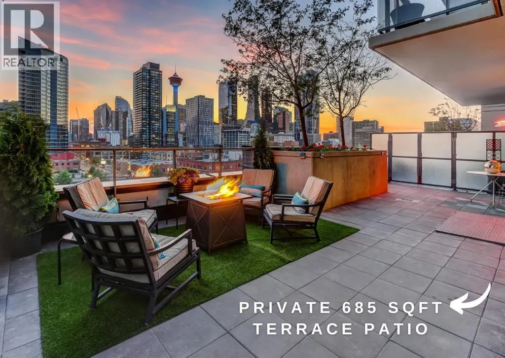 Love downtown living but craving outdoor space? This stunning SW corner terrace unit offers the best of both worlds – a rare, wrap-around 685 sqft terrace with breathtaking views of the city skyline. Located on the 7th floor, this bright and spacious corner layout features 10’ ceilings and expansive floor-to-ceiling windows that flood this unit with natural light and truly