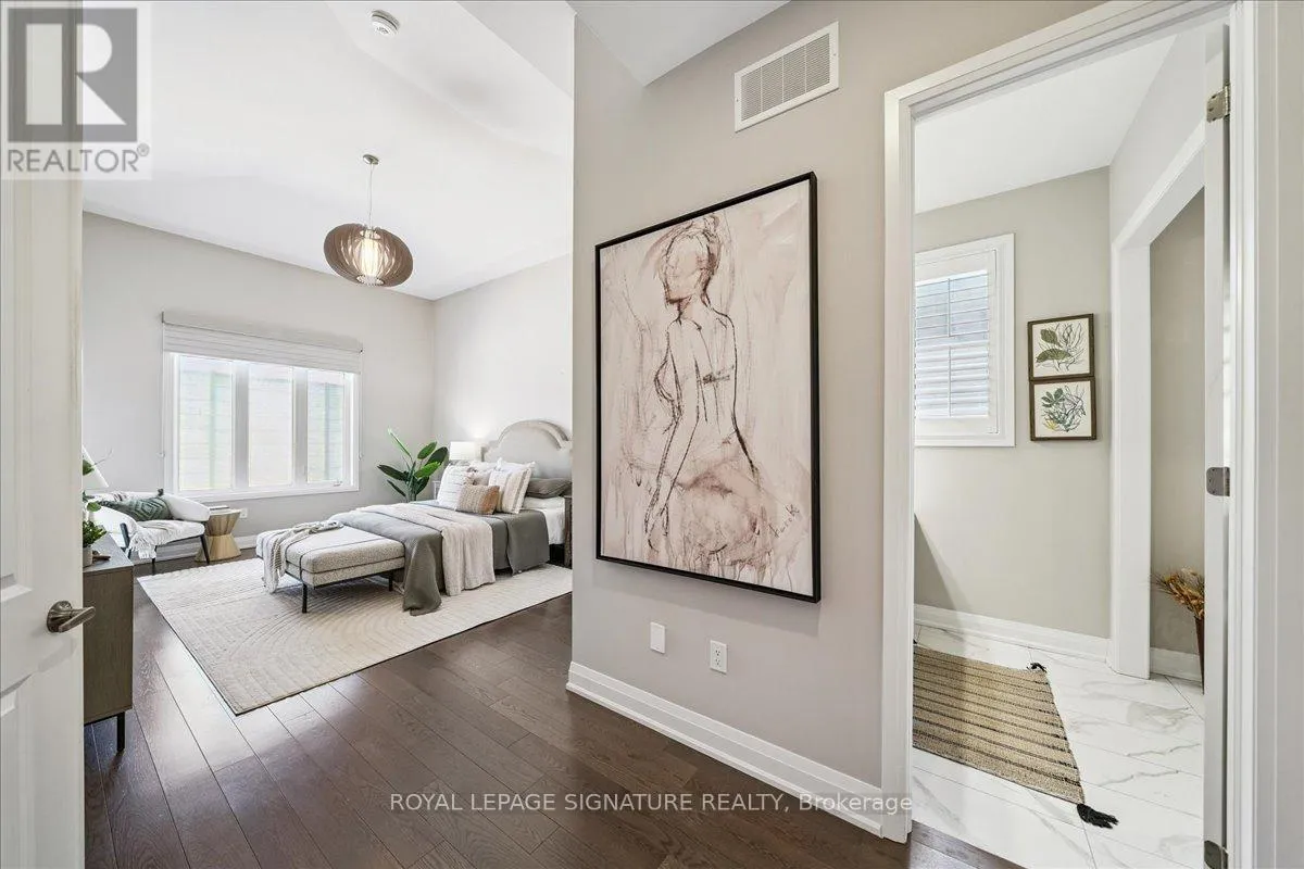The one you’ve been waiting for. Welcome to a rare executive bungaloft in the prestigious Rosebank community – thoughtfully designed for downsizers, families, and multi-generational living. Tucked on a quiet court and set on an oversized pie-shaped lot widening to over 100 feet, this custom build by Marshall Homes blends architectural elegance with everyday function. Soaring double-height ceilings elevate the