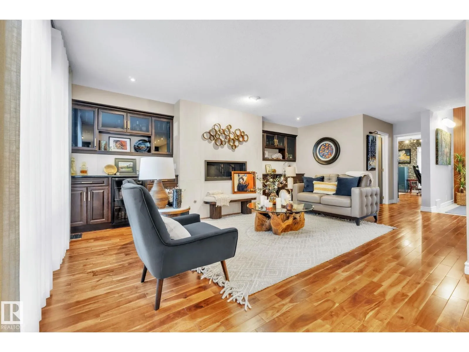 Bold, Architectural & Refined! Set within a private gated community along Edmonton’s river valley, this exceptional townhouse offers superb living surrounded by nature. Every inch has been thoughtfully redesigned, creating a home that balances warmth, sophistication & comfort. Visit REALTOR® website for all the details! The main level features an inviting open layout ideal for entertaining, enhanced by rich hardwood,