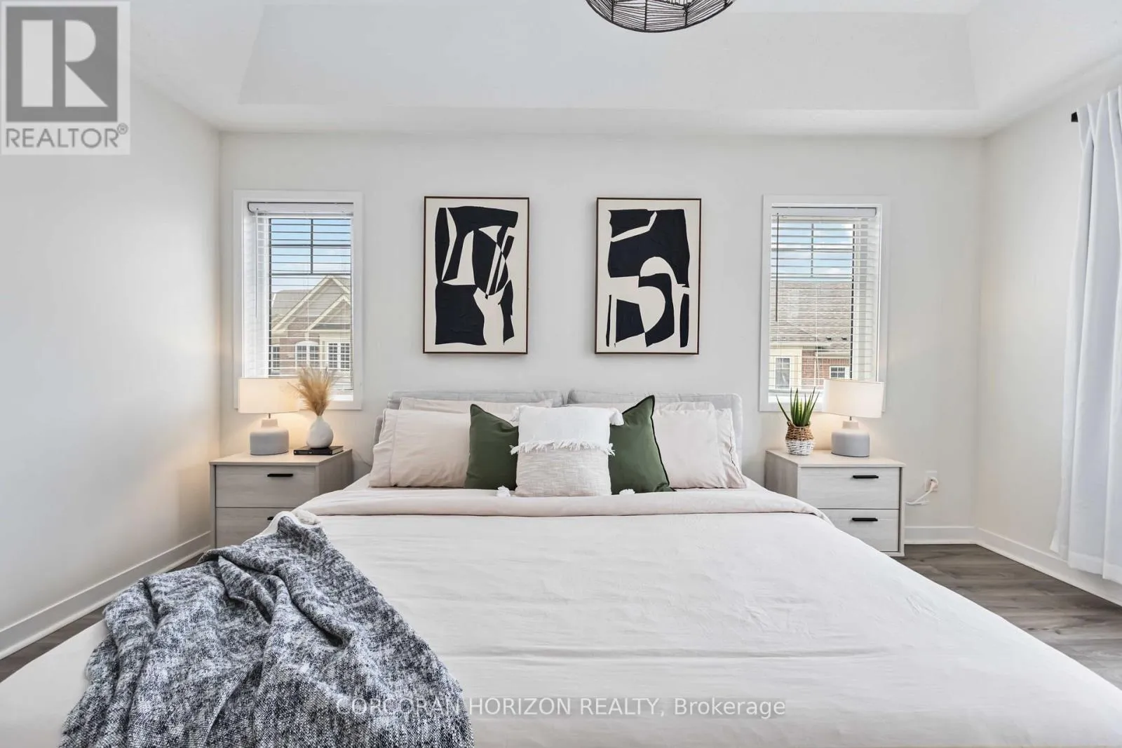 Freehold Corner Lot in Glenway Estates – Upsizing or Downsizing Dreams Come True! — Flooded with natural light from the best 3 exposures –South, East, and West, this 4-bedroom + main-floor office home blends style and function effortlessly. Nearly 2,000 sq. ft. with a boho-beach vibe, featuring unobstructed sunset views from both the living room and primary bedroom. The exterior