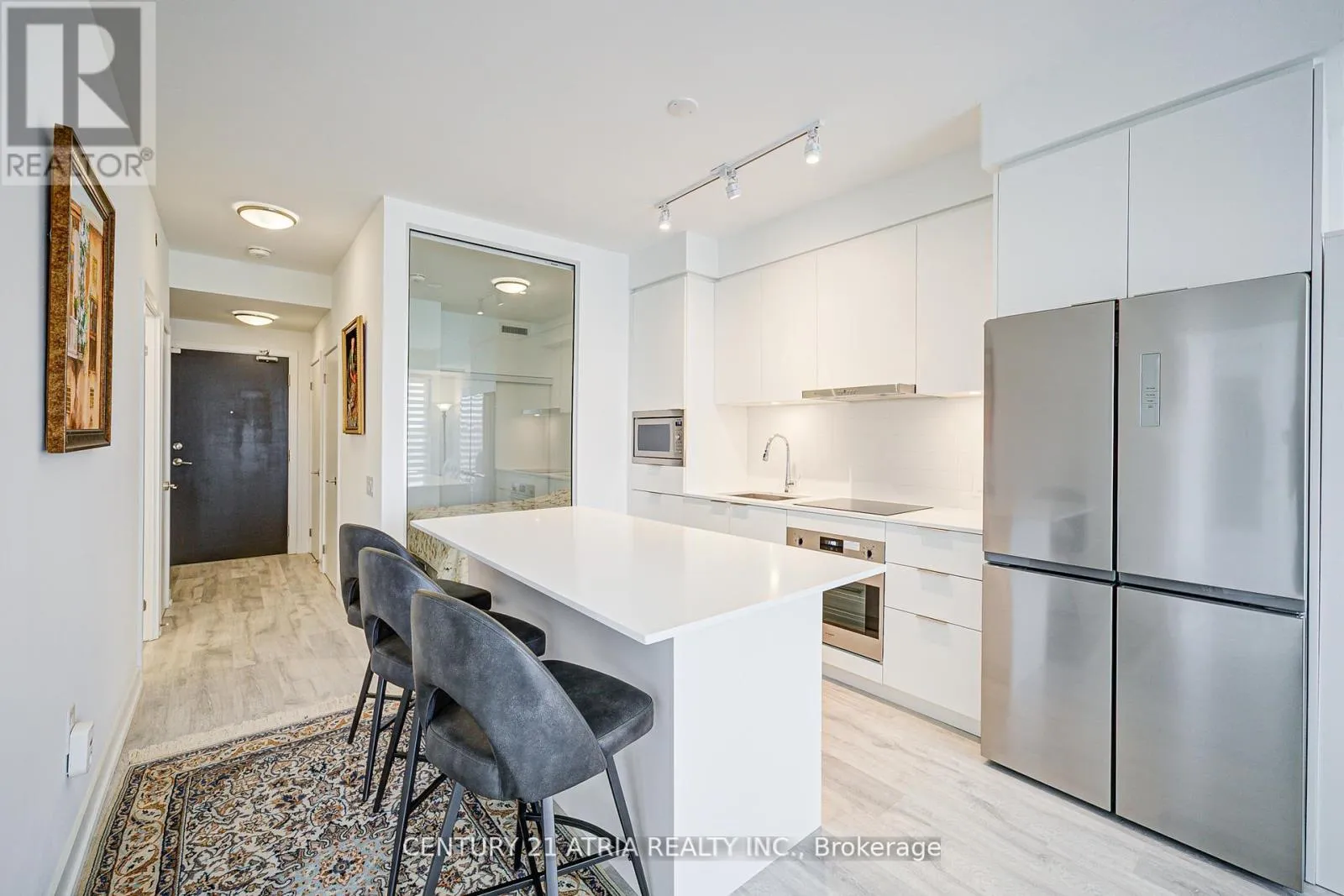 Welcome to this two year old, luxurious, bright, and spacious 2-bedroom + den condo with breathtaking North east exposure. The den can be used as a home office. This unit features 759 SQF. Highly functional space, allowing for an open and unobstructed layout. walk-out access to one private balcony, and no carpets throughout. The modern kitchen is equipped with built-in