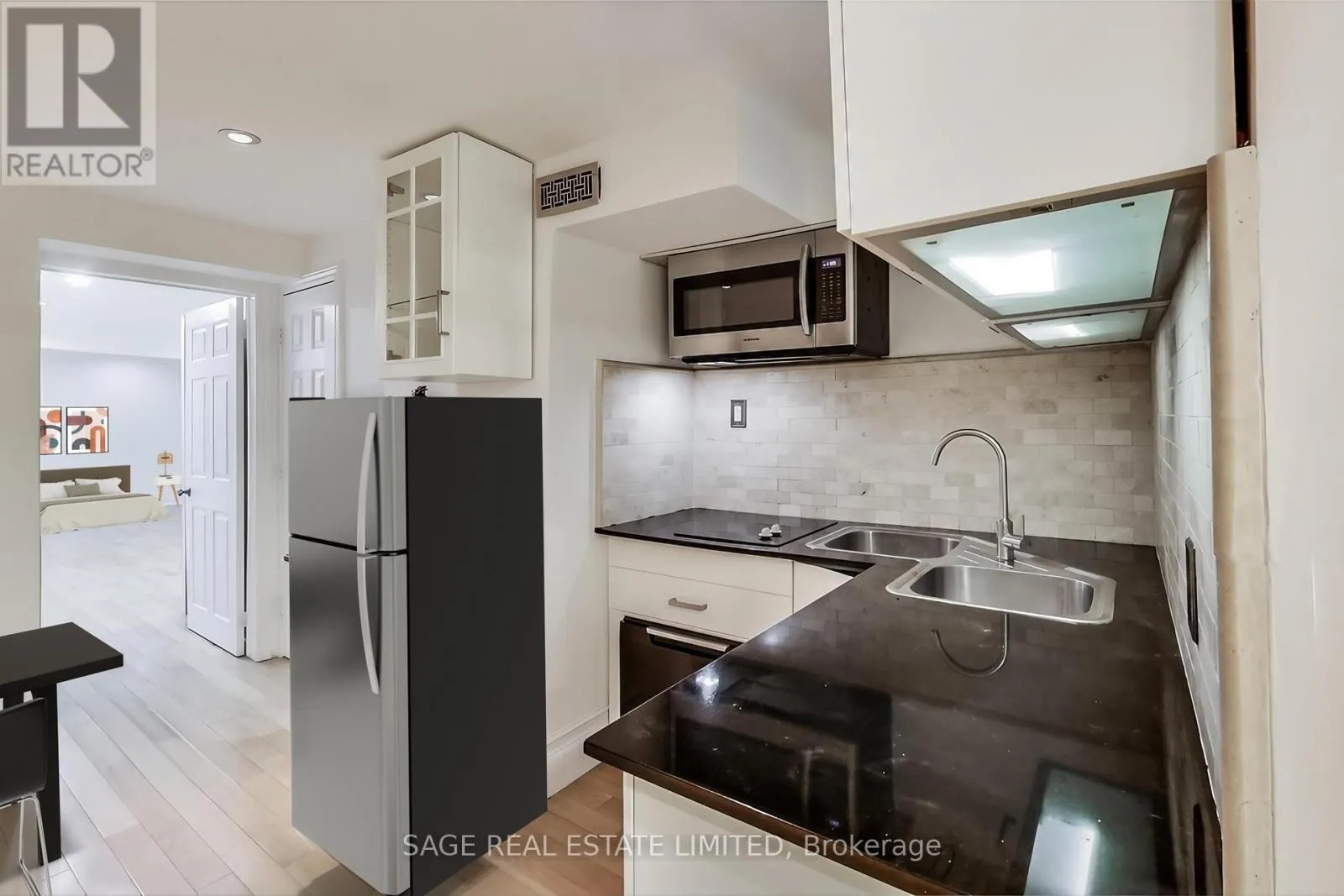 Bright, spacious, and upgraded lower-level suite in the heart of downtown Toronto.This oversized 860 sq ft one-bedroom apartment features high ceilings, hardwood floors, recessed lighting, and a well-designed layout that feels open and comfortable throughout.The modern kitchen offers stainless steel appliances, stone countertops, and ample storage. Enjoy the convenience of an updated bathroom, central A/C, and en-suite laundry.The large bedroom