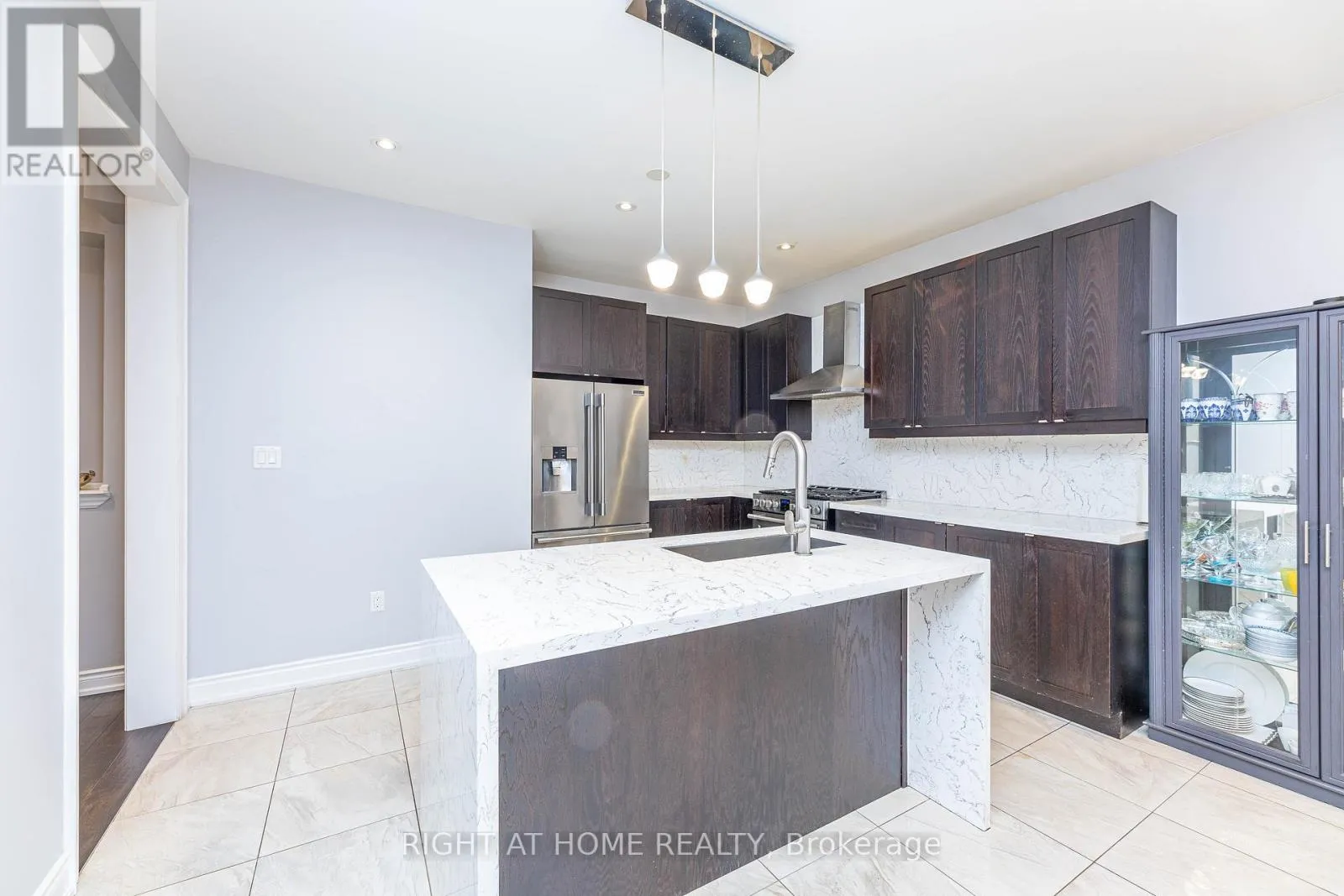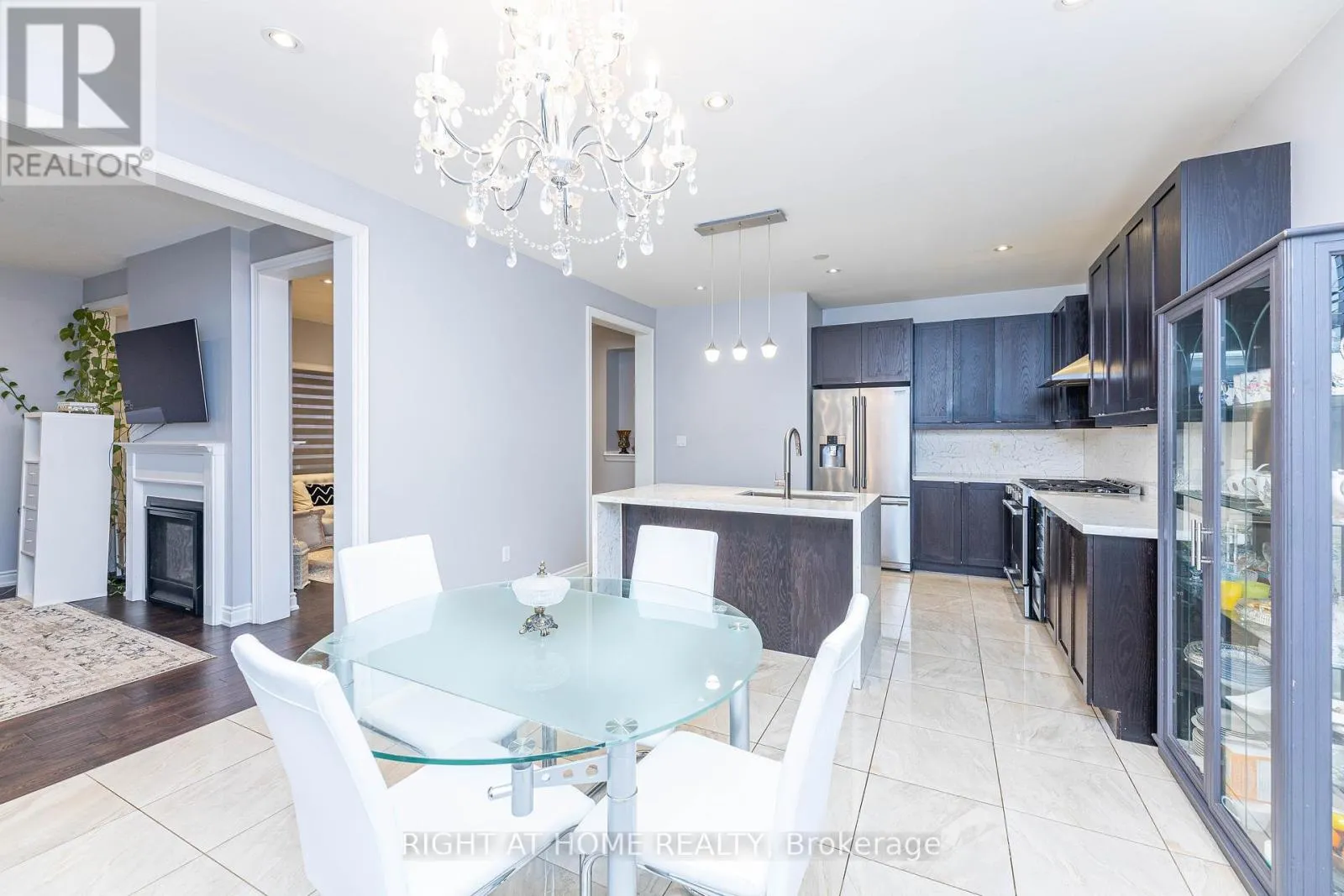 This stunning and inviting home offers an ideal blend of comfort and style. Featuring 4+3 bedrooms and 4.5 bathrooms, it sits on a quiet street leading to a cul-de-sac, perfectly positioned facing a serene pond.Enjoy an open-concept layout with 9-ft ceilings, oak stairs, hand-scraped hardwood flooring, and a double-sided gas fireplace that adds warmth and elegance. The modern kitchen boasts
