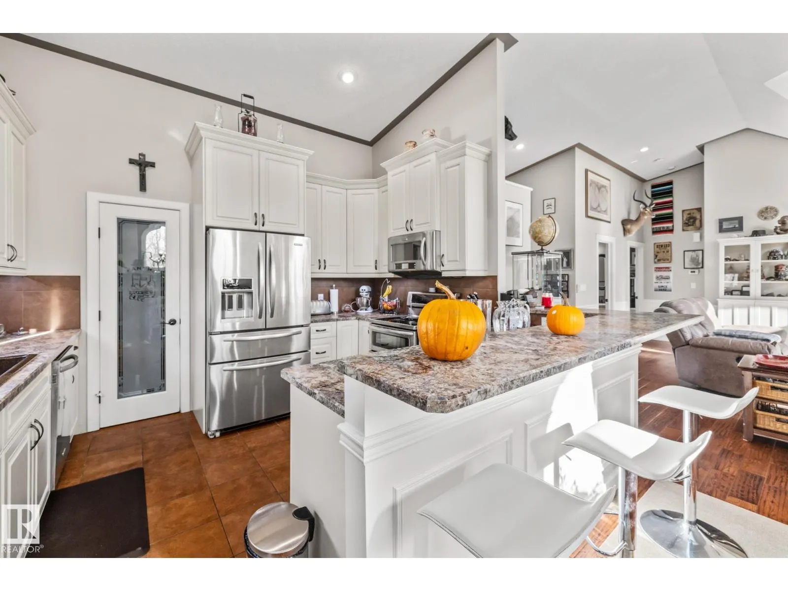 Experience peaceful country living in Meso West, just north of Hwy 16 at RR30—only 10 minutes to Stony Plain and less than 3 km from Cougar Creek Golf Course. Set high on a private, treed lot with ravine views, this 2011 custom-built home is ideal for those seeking space, privacy, and room for vehicles, toys, and projects. The highlight is