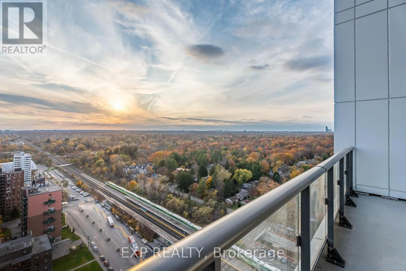 Penthouse Perfection on the Top Floor! 2 bedroom + 2 full bath suite with 1 parking included. Soaring high ceilings and expansive floor-to-ceiling windows flood the open-concept layout with natural light, creating an airy, sophisticated feel. Step out to your large balcony for breathtaking west-facing views – perfect for stunning sunsets over the city and lake glimpses.Enjoy premium modern finishes: