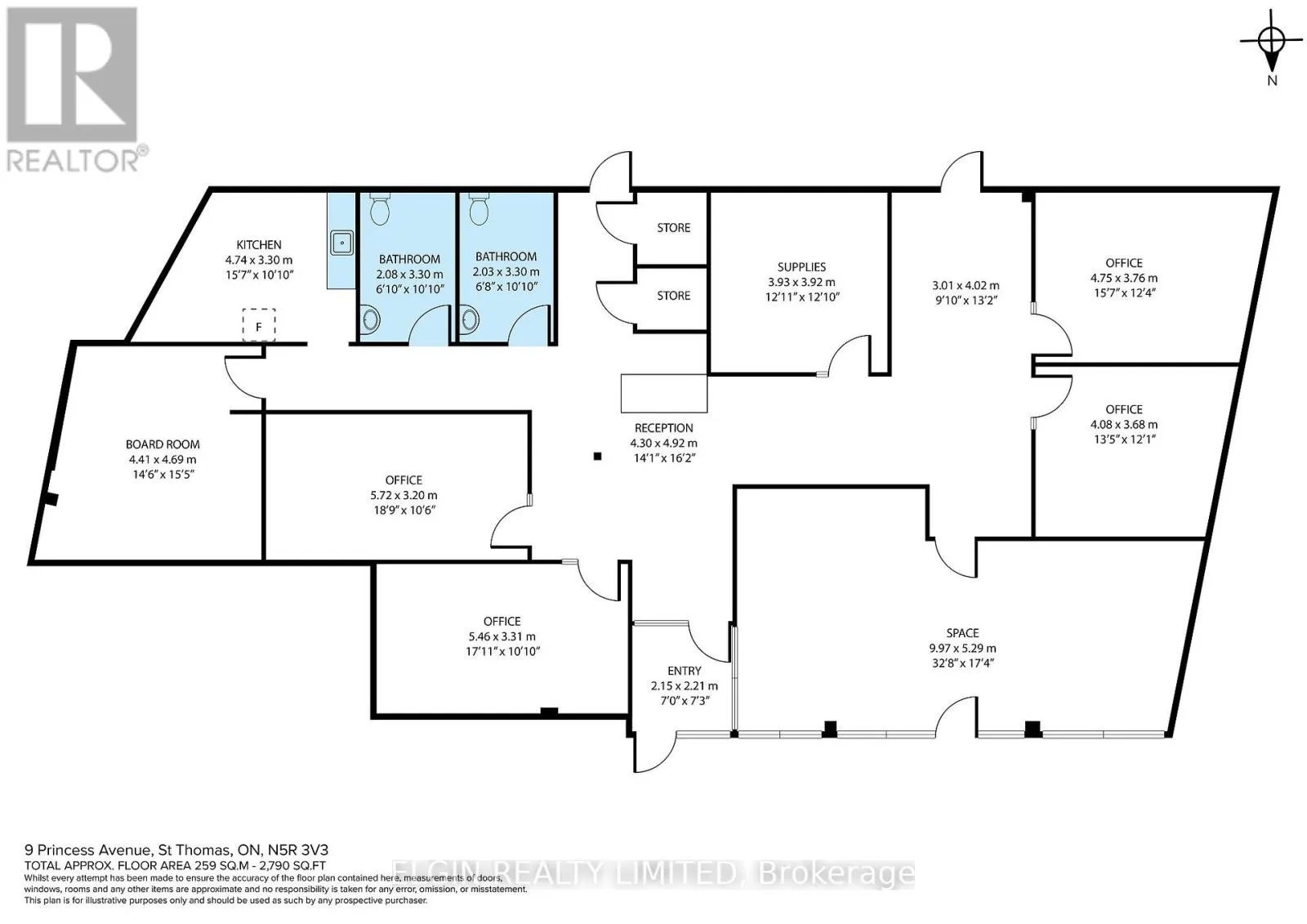 Approximately 2975 sq ft available. Attractive highly visible location in the heart of Downtown St Thomas. Bright, clean, large windows. Currently divided into large offices with central reception area. Plenty of parking. Good signage. Current tenants include Insurance office, Pizza restaurant, and Hair stylist. Preferred terms & rates for long term tenant. (id:62650)