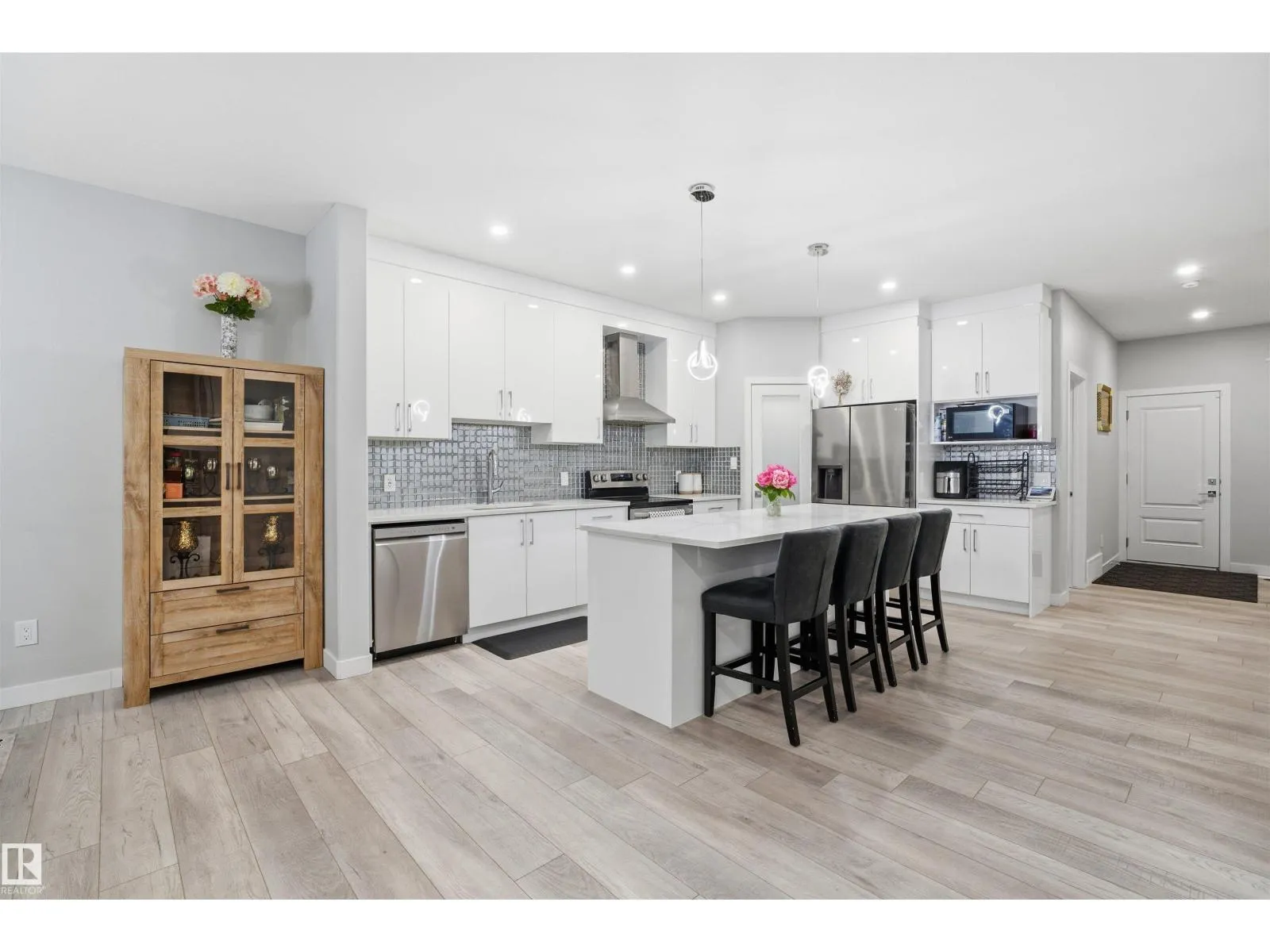 Welcome to this beautifully customized detached home with a double car garage, Beautifully customized detached resale home with double car garage in the desirable community of Robinson.Main floor offers a mudroom, open-concept kitchen with backsplash, ample cabinetry, huge pantry, and dining area overlooking the backyard. Spacious family room features a fireplace and stylish feature wall. Versatile main-floor den/bedroom with convenient