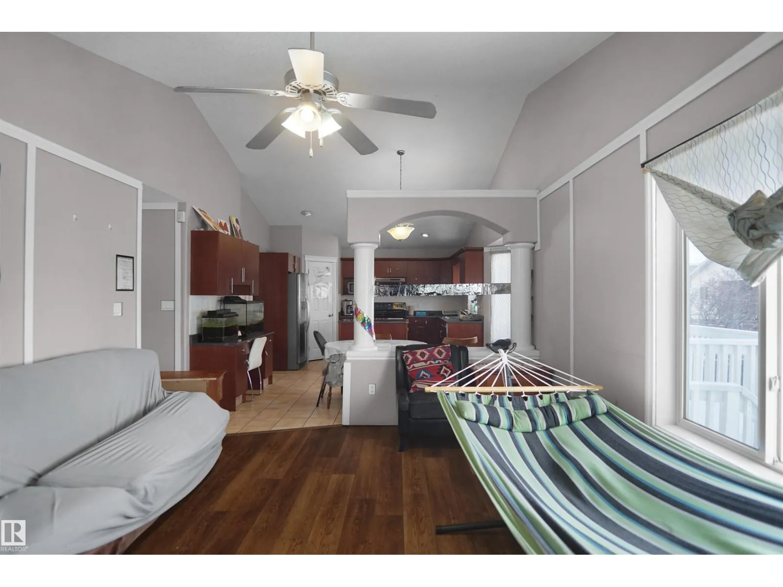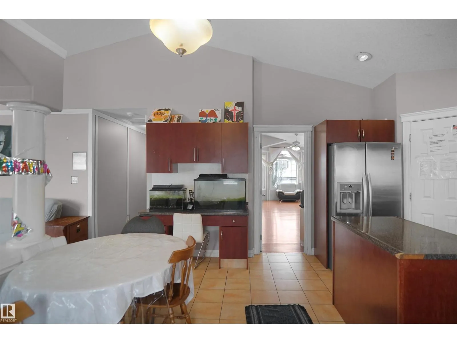 Located in a desirable family-oriented neighbourhood, this home offers a functional open-concept layout with vaulted ceilings and honey oak hardwood flooring throughout. The spacious dining area is ideal for family gatherings and entertaining.The generous primary bedroom features a walk-in closet and a full ensuite with a corner soaker tub and separate shower. The kitchen is the highlight of the home,