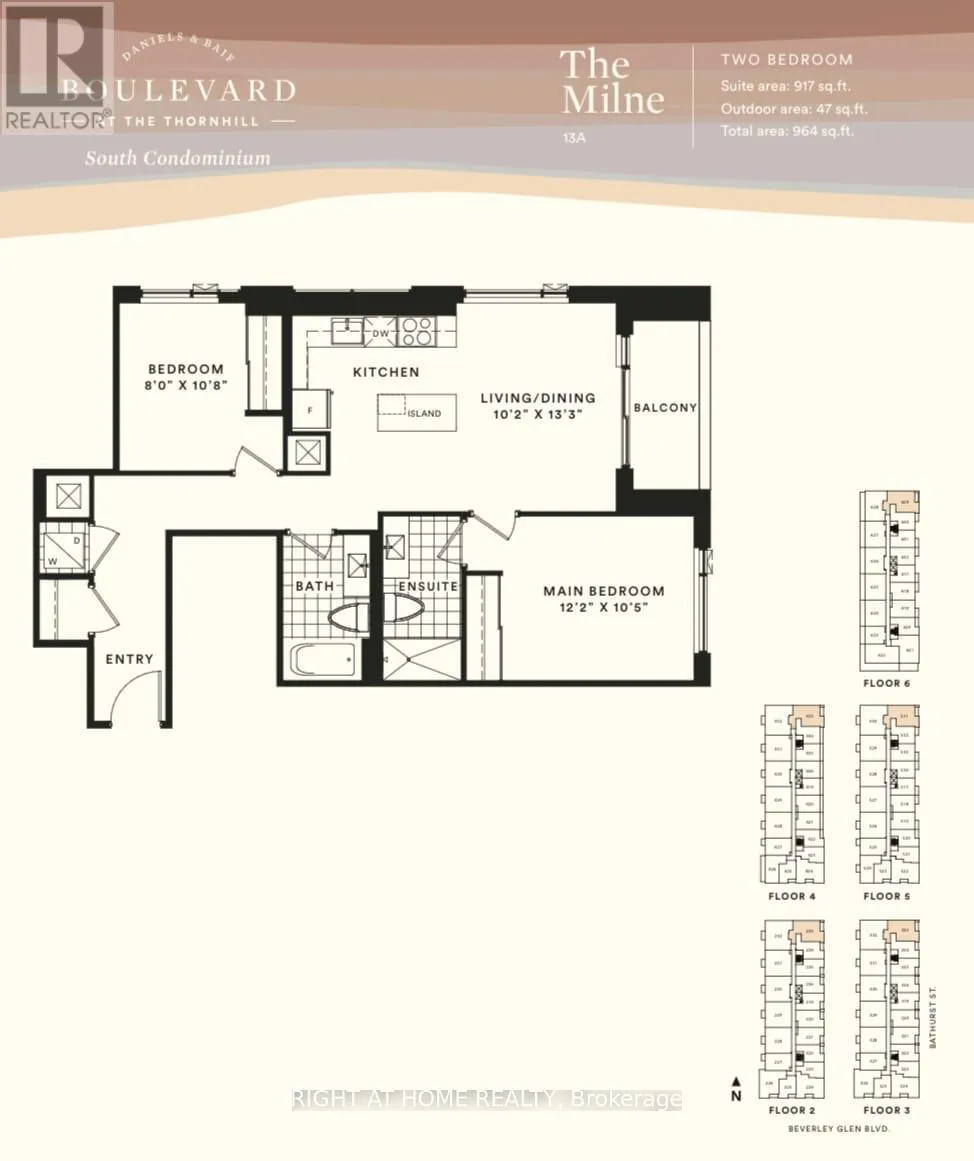 Welcome to the impeccable Boulevard Unit # D433 at Thornhill, built by the renowned Daniels Corporation. This sleek and contemporary 2-bedroom, 2-bathroom residence features the thoughtfully designed Milne floor plan, offering 964 sq. ft. of total living space (917 sq. ft. interior plus a 47 sq. ft. private balcony). Bright east and north exposures, 9-foot ceilings, upgraded light-toned flooring, and