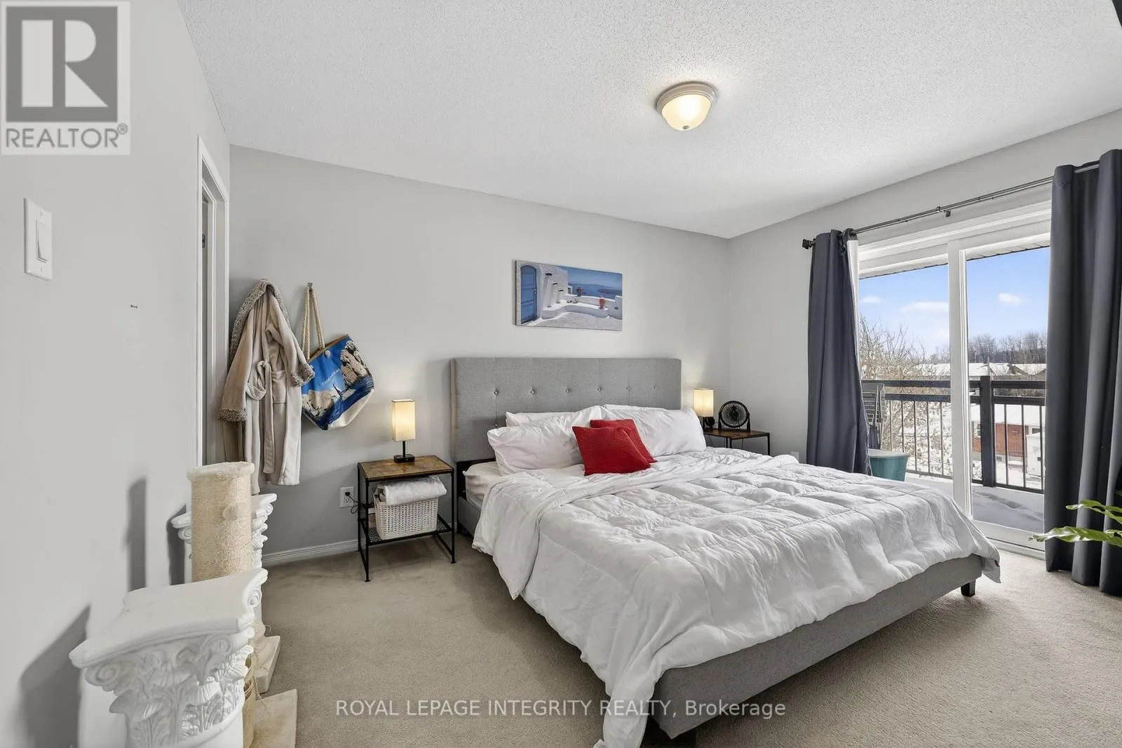 Bright and well-maintained upper-unit terrace home offering an ideal layout for professionals, first-time buyers, or investors. The inviting chalet-style living room features a gas fireplace and second-floor loft overlooking the space below. The open-concept main floor includes a modern kitchen with stainless steel appliances, shaker-style cabinetry, subway tile backsplash, double sinks, and pot lighting, with access to a private balcony.The