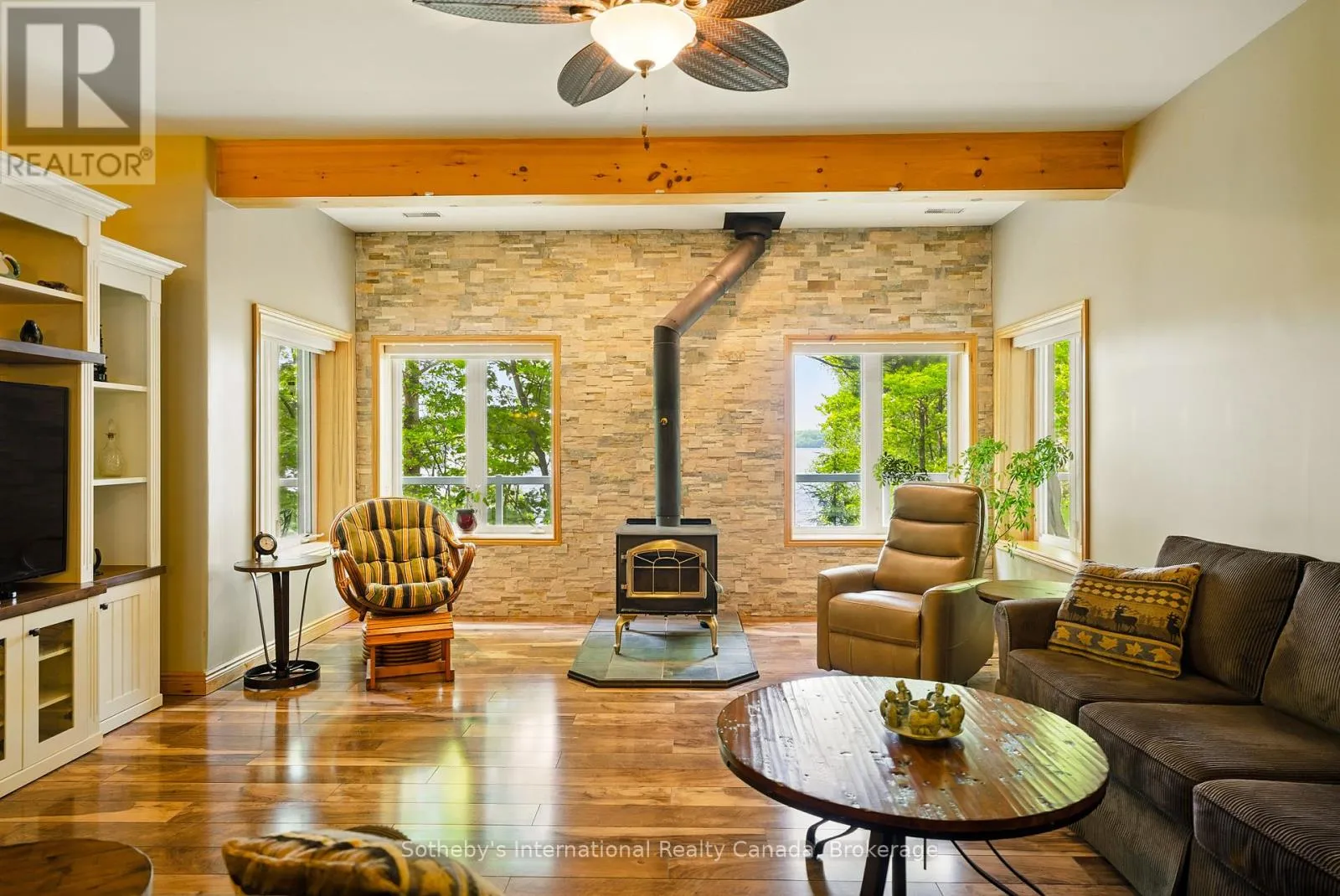 Built in 2008, this energy-efficient ICF block bungalow with walk-out basement offers year-round comfort. Situated at the end of a dead-end road provides privacy on this irregular 1-acre lot. Lake front property with the desirable southwest exposure of Lake Cecebe, a lake that offers 40 miles of boating joining Lake Cecebe with the Magnetawan River, Midlothian Lake and Ahmic Lake.