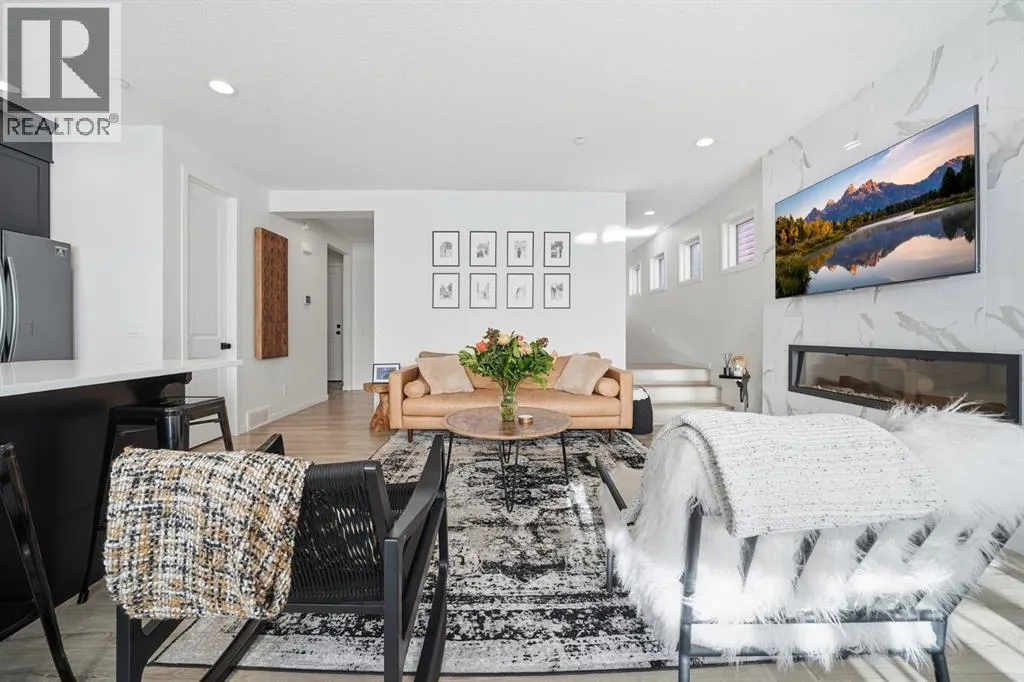 Welcome to this beautifully designed two storey home in the vibrant, family friendly community of Livingston. Warm, stylish, and move in ready, this meticulously maintained residence offers over 2,000 square feet of thoughtfully planned living space, balancing comfort, functionality, and everyday ease.The main level welcomes you with a spacious foyer and convenient powder room before opening into a bright and