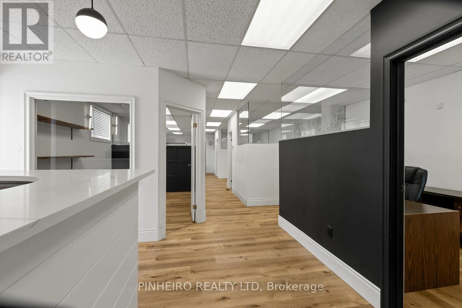 Professional office space for lease in a very well cared for building on a high traffic corridor in east London. Approximately 1230 sq feet on the main floor w/direct access to side parking lot. The space has been renovated w/modern decor, LED lighting throughout, four private offices that have glass partitions, welcoming reception area, open area for boardroom or conference