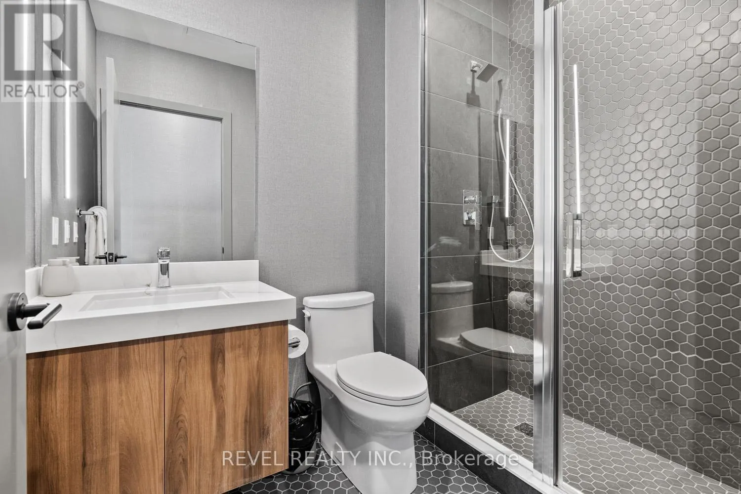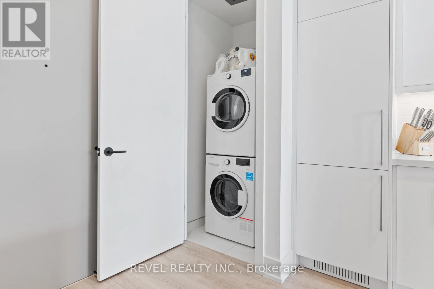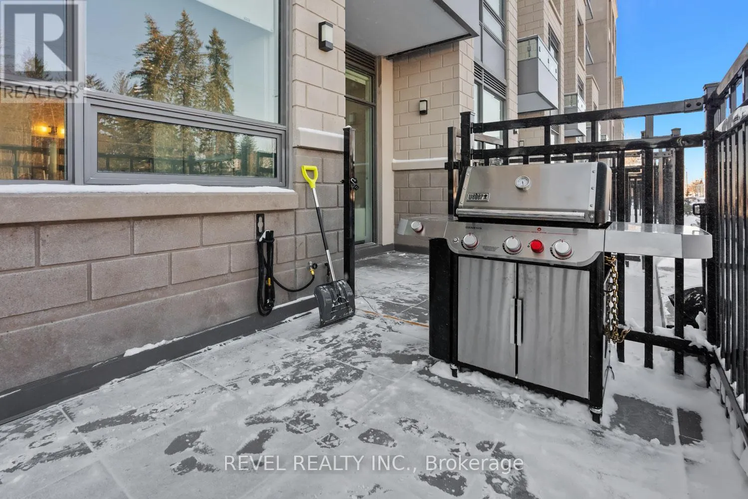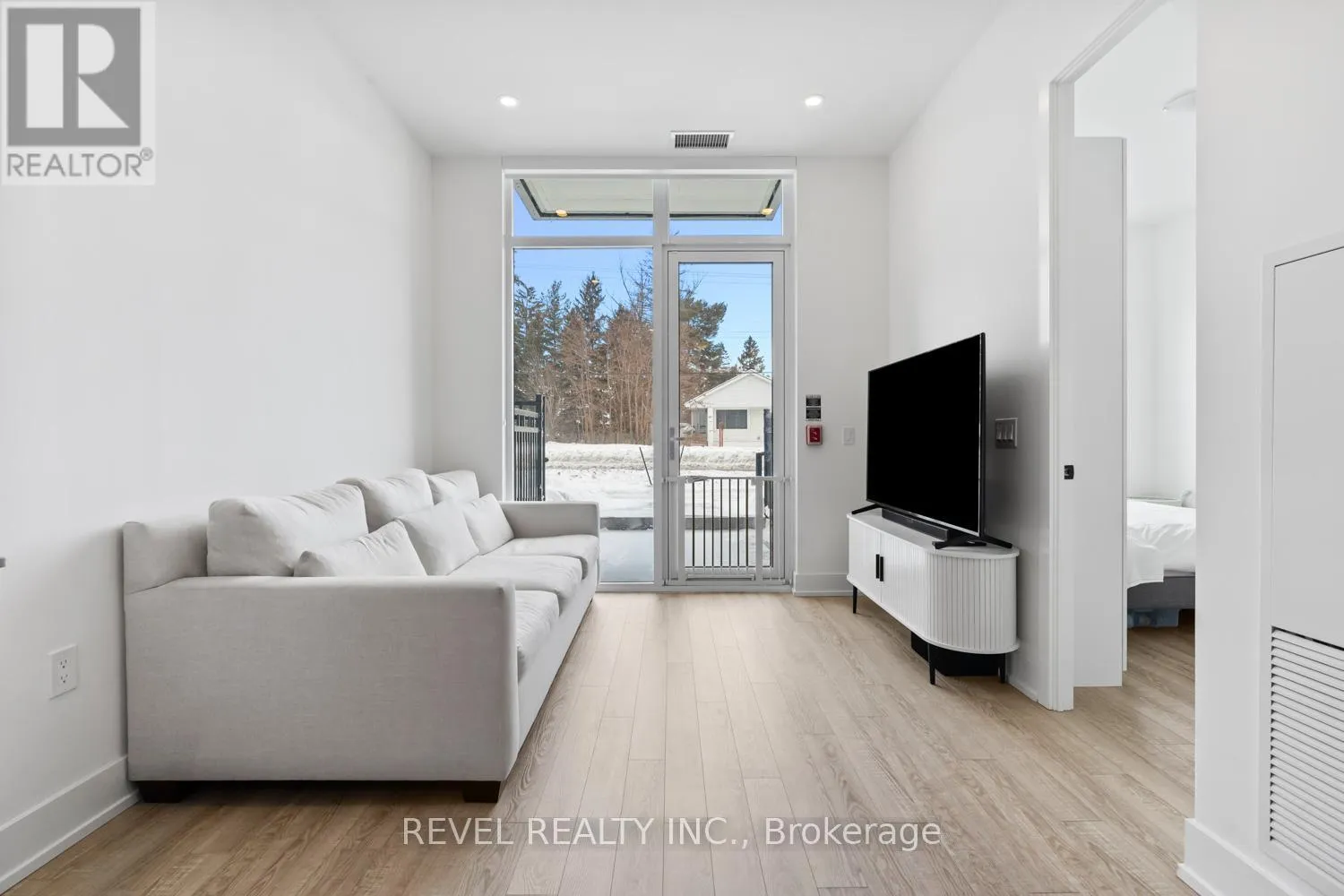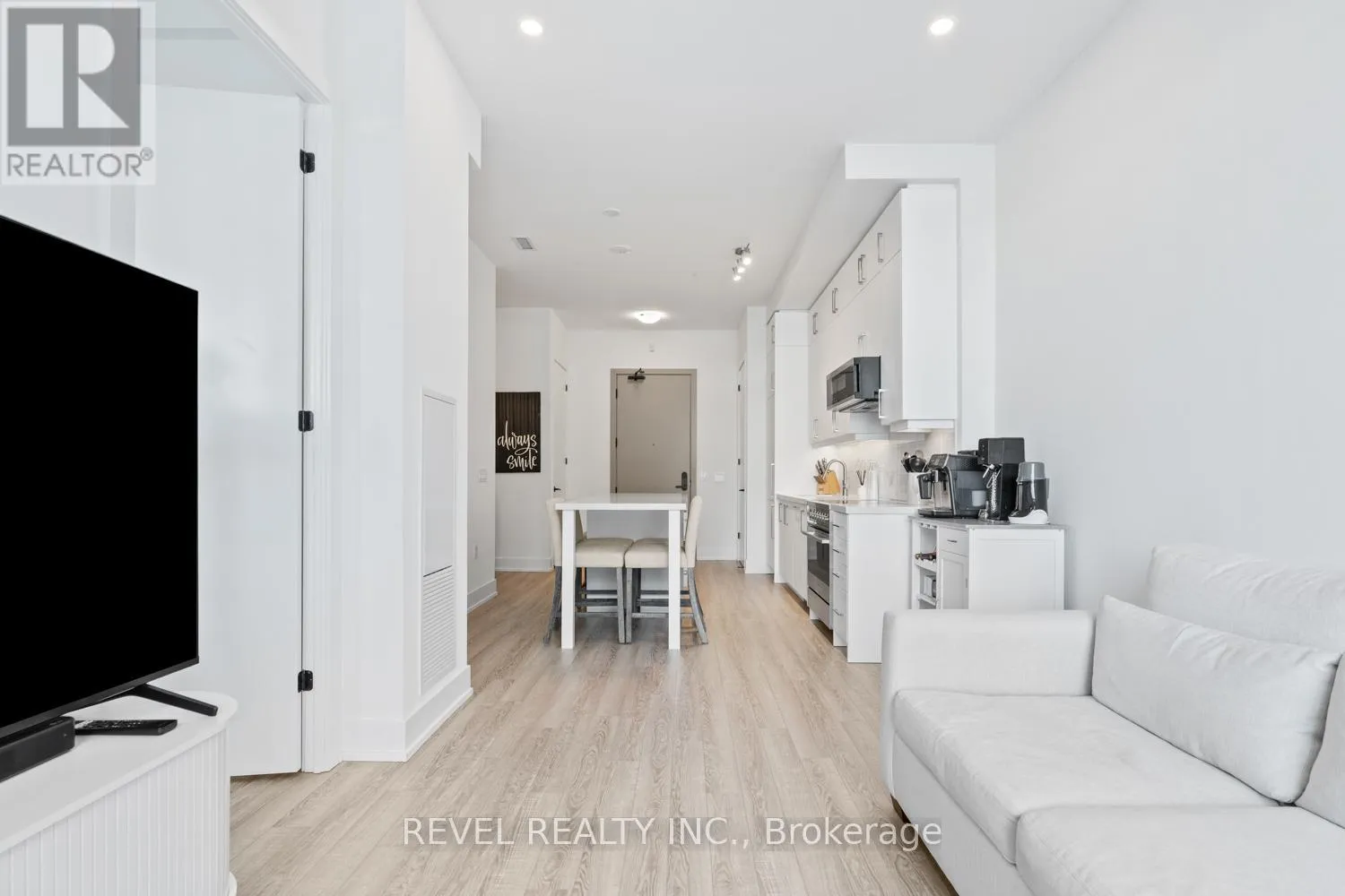 Welcome to Suite 123, a beautifully designed 667 sq. ft. unit + private outdoor patio. A residence that blends modern comfort with upscale, custom finishes. Featuring 10-foot ceilings and floor-to-ceiling windows in the living area, this home is filled with natural light and offers an airy, sophisticated atmosphere.The open-concept kitchen has been fully upgraded, showcasing custom cabinetry extended to the