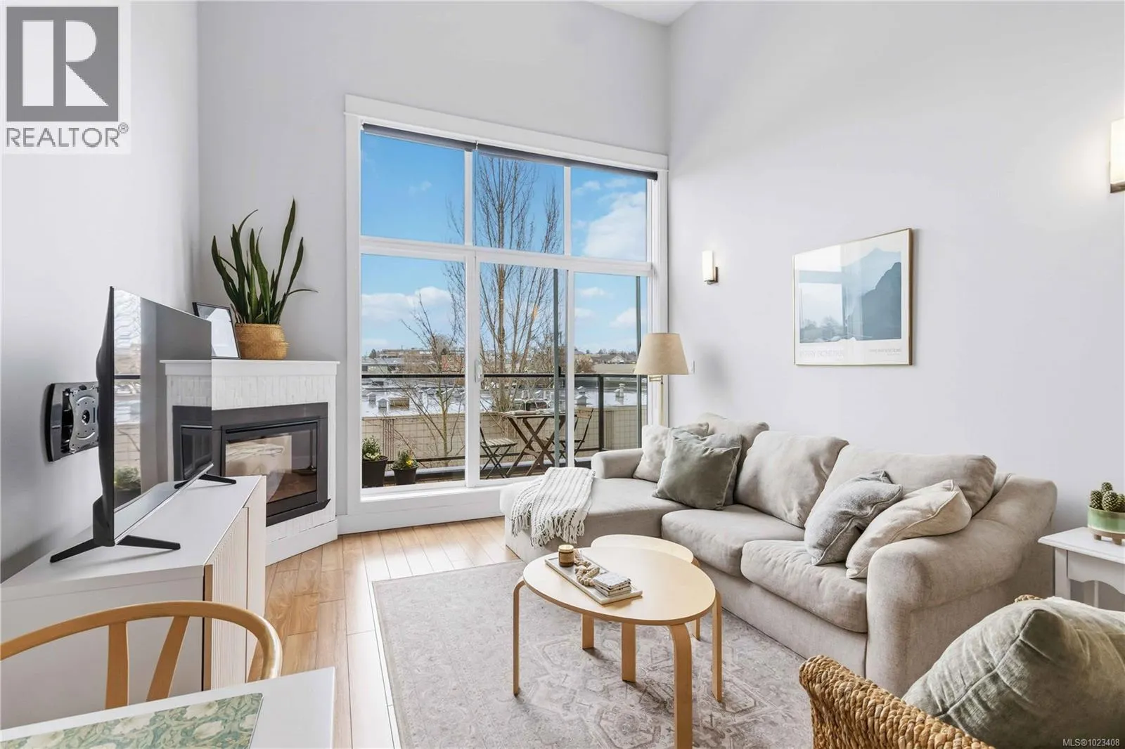 Welcome to 308 – 630 Speed Ave! This is a TOP FLOOR 2-bedroom 2-bathroom condo that shows as brand new. You will notice a great pride in ownership throughout the home. Enter inside to find a bright, open-concept living area with vaulted ceilings, freshly painted walls, an electric fireplace, and large windows leading out to your balcony. Your kitchen offers