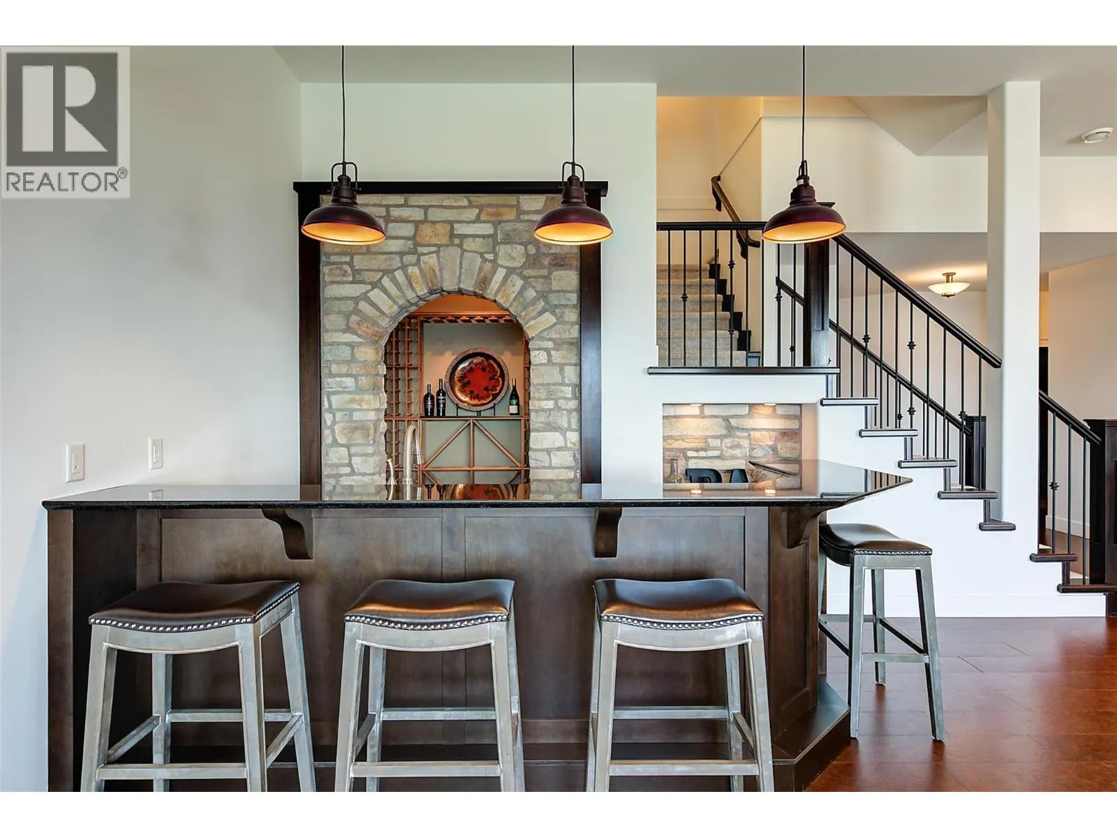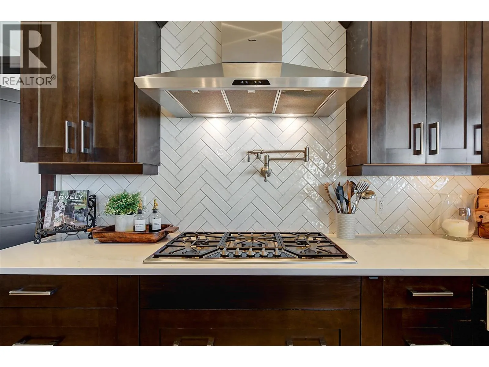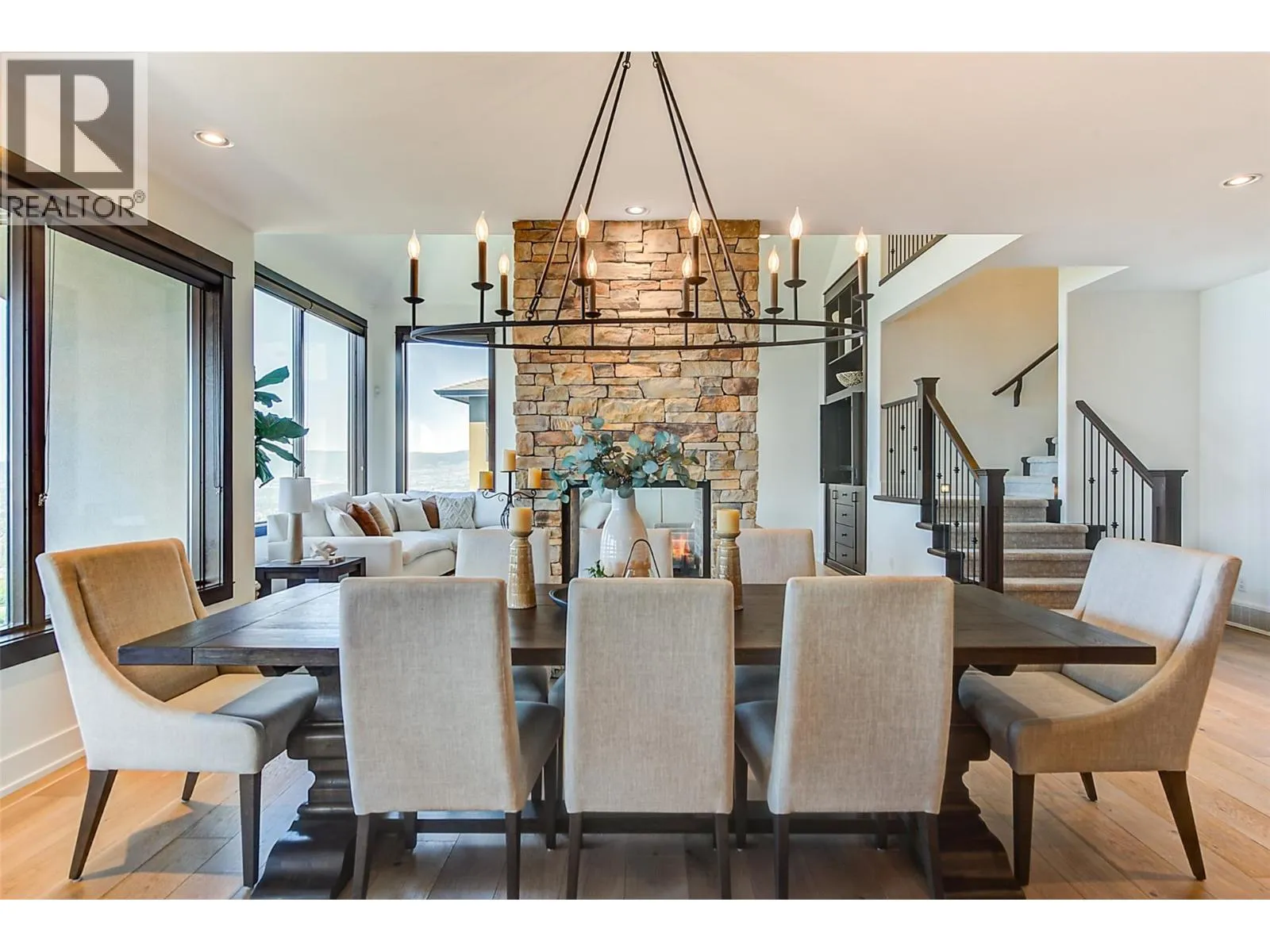 Former TOMMIE AWARD WINNING HOME, 180 degree unobstructed lake views, location, luxury, and low maintenance Synlawn. Extensively updated 5 bed executive home in Upper Mission with expansive lake views, designed to accommodate the active family and those who love to entertain. Over height ceilings, premium Kolbe wood windows, detailed finishes, hardwood floors, custom cabinetry, 2-sided stone fireplace in vaulted great