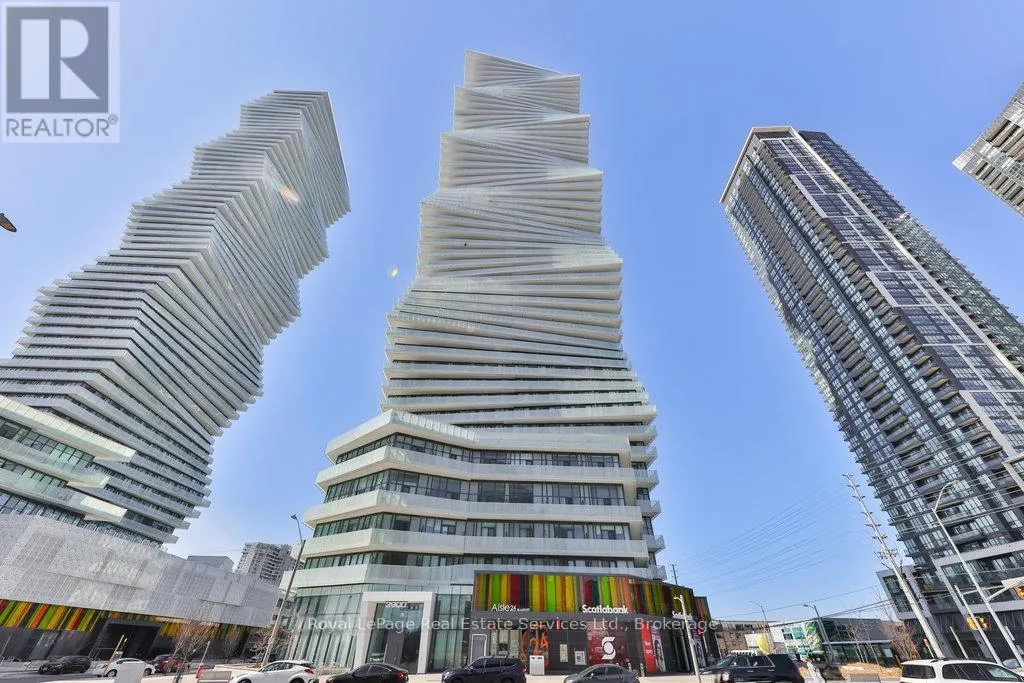 Luxurious 2-Storey Penthouse in the Heart of Mississauga. Step into this elegant 2-storey corner penthouse unit featuring 2+1 bedrooms, 2.5 baths + 2 parking spaces designed for elevated urban living. The bright & spacious living/dining area is seamlessly connected to an open-concept kitchen, perfect for entertaining. Floor-to-ceiling windows flood the space with natural light and a walkout leads to one